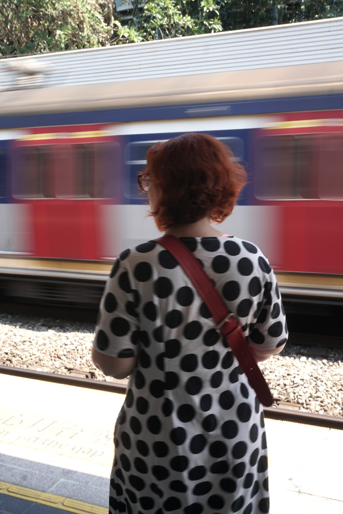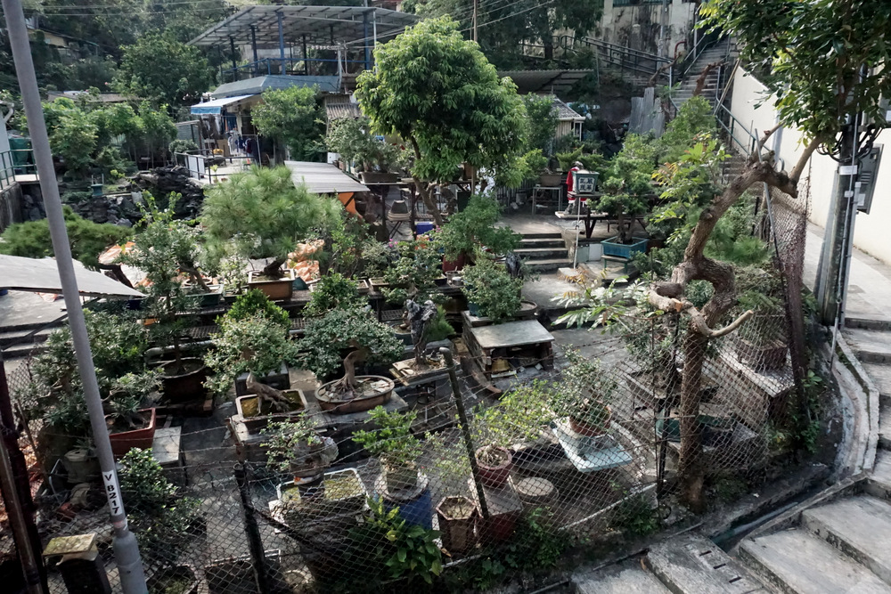 Ce matin, métro avec deux changements pour nous rendre jusqu’à Sha Tin, situé à environ 8 km du centre et desservi par une sorte de train léger façon RER. Nous espérons visiter le monastère des 10 000 Bouddha, mais pour ça, il faudrait déjà le trouver! Nous galérons pour sortir du métro, prenons une série d’escalators, aboutissons dans un cour en grands travaux, traversons des salles pleines d’urnes funéraires, gravissons des tas d’escaliers jusqu’à ce qu’une dame nous fasse comprendre par signes que non, le monastère n’est pas perché au sommet de ce cimetière, qu’il faut redescendre et entrer… quelque part ailleurs sur la gauche. Le soleil qui était resté caché derrière les nuages depuis notre retour à Hong Kong tape dur aujourd’hui; en arrivant en bas, je suis déjà à deux doigts de défaillir à cause de la chaleur et du manque d’hydratation (l’eau du robinet est fabuleusement dégueulasse; pas question de remplir des bouteilles réutilisables au robinet de l’hôtel, et il n’y a pas de distributeurs de boissons partout…). En l’absence de signalisation claire et au vu de la pente impressionnante dans la direction du monastère, je préfère renoncer.