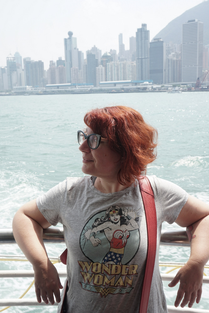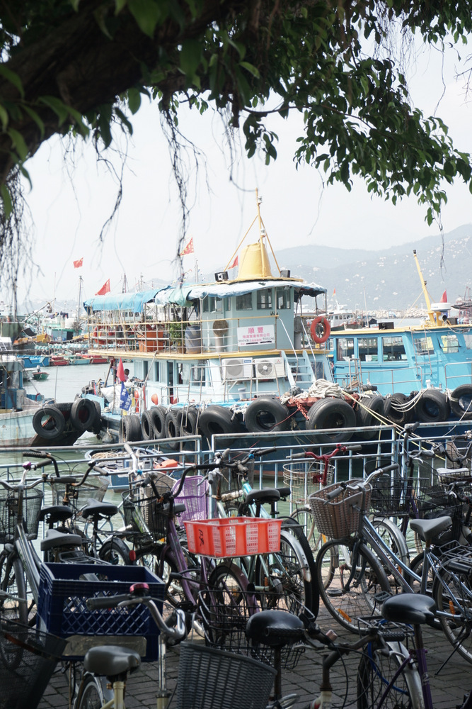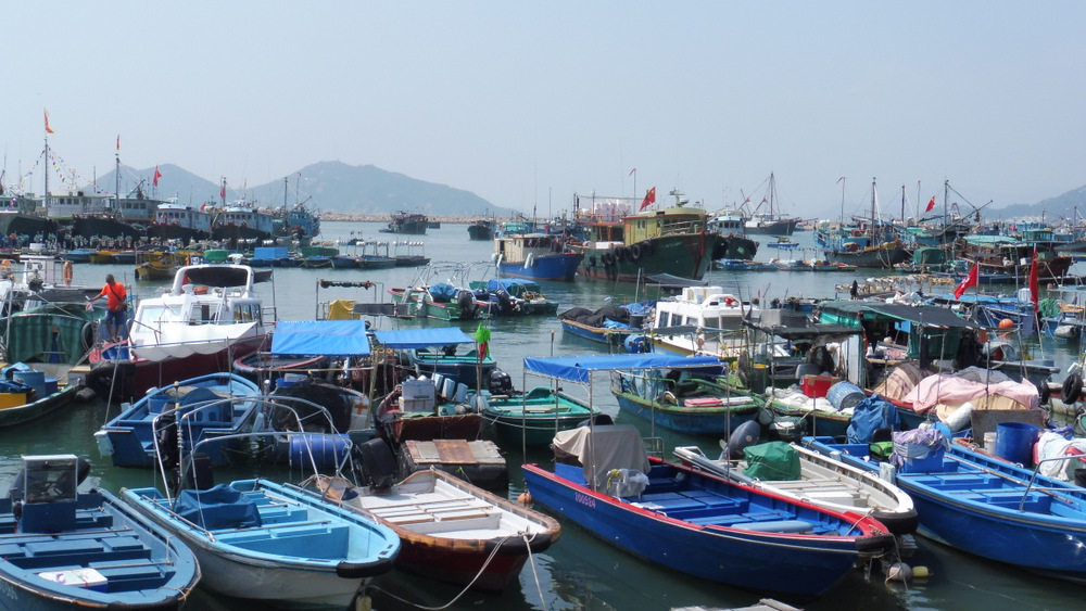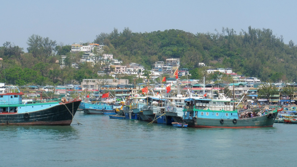 Hier soir après l’extinction des feux, j’ai soudain été prise de la trouille irrationnelle que la clim’, qu’on laisse en marche pendant la nuit, foute le feu à l’hôtel, et je n’ai pas réussi à m’endormir avant d’avoir mis au point et répété plusieurs fois dans ma tête un plan d’évacuation optimal. Comme en plus je me suis réveillée spontanément à 7h30, je ne suis qu’à moitié reposée. Vers 10h, nous quittons l’hôtel et descendons à pied jusqu’aux quais pour prendre le Star Ferry jusqu’à Central et, de là, un autre ferry jusqu’à l’île de pêcheurs de Cheung Chau. Moins de 2€ pour une heure de trajet, c’est assez hallucinant. Après avoir vaguement regardé Hong Kong Island recéder derrière nous, je me plonge dans le bouquin que j’ai commencé le premier jour des vacances – il est génial et je voudrais bien le finir.