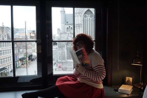L’an dernier, nous étions venus à Gand pour voir une expo au Design Museum, et nous en avions profité pour tester un bar à cocktails recommandé par Gasparde: The Cobbler. Celui-ci se situe au premier étage de l’ancienne poste de la ville, un bâtiment superbe datant de la fin du XIXème siècle dont le rez-de-chaussée est désormais occupé par un petit centre commercial bobo à souhait, et les étages par un hôtel appartenant au réseau Zannier. La simple vision des couloirs à la moquette épaisse et aux murs sombres, décorés de vieux livres, avait suffi à me séduire et me donner envie de revenir passer une nuit dans cet établissement. Bien que j’aie des goûts plutôt minimalistes en matière de déco, associés à une sainte horreur du bling-bling et du kitsch, j’avoue que je ne crache pas du tout sur le luxe bourgeois feutré. Et tout ce que je voyais des chambres du 1898 The Post sur leur site internet me disait que je m’y plairait beaucoup…