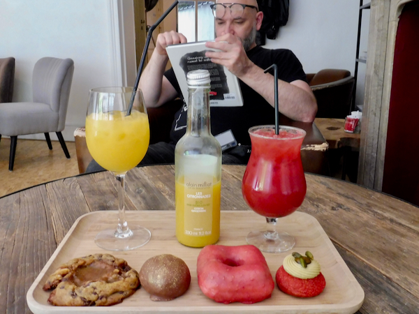 ★ Le matin, je récure ma cuisine à fond et je fais une demi-heure d’abdos avec Adriene malgré les 30° qu’affiche le thermomètre. Du coup, l’après-midi, je vais glander chez Chouconut devant un délicieux thé glacé jasmin/framboise/rhubarbe.