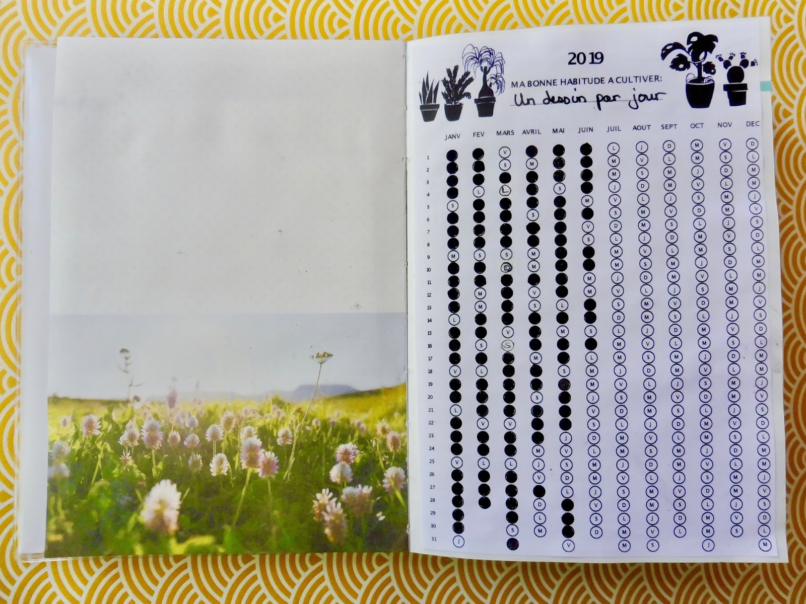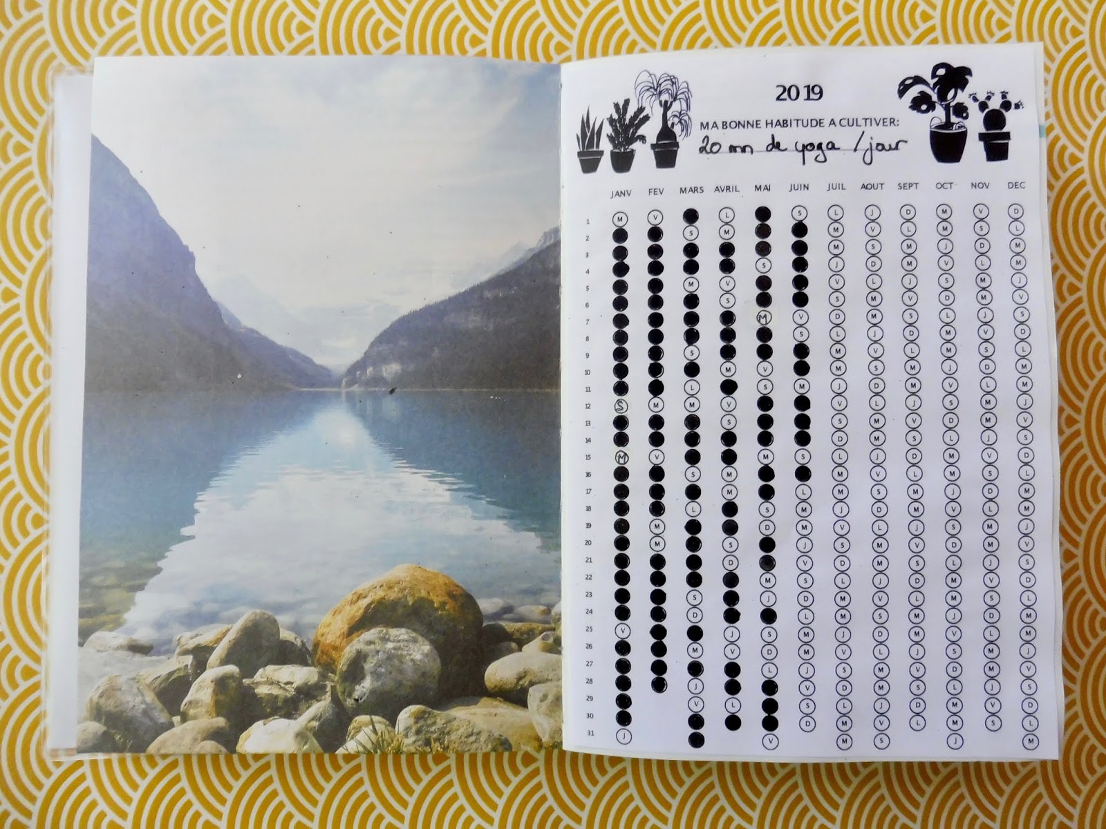 La moitié de l’année étant déjà écoulée, le moment me semblait bien choisi pour faire un petit bilan de mes résolutions 2019. J’avais décidé de développer deux nouvelles habitudes: pratiquer le yoga 20 mn par jour, et dessiner dans mon agenda chaque jour. Au bout de six mois, voici ce que ça donne (les photos ont été prises dimanche):