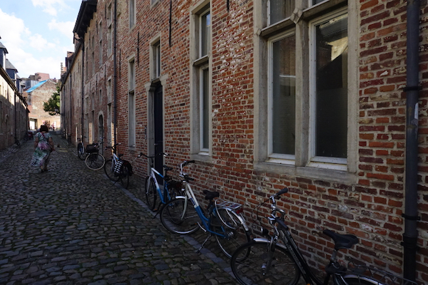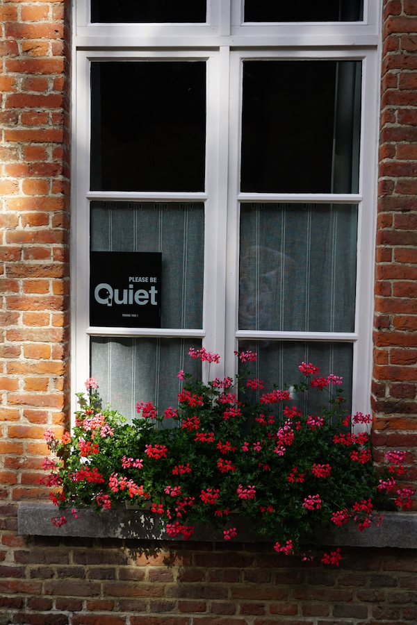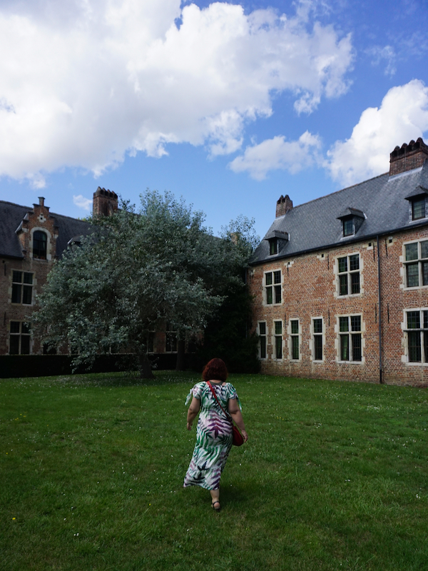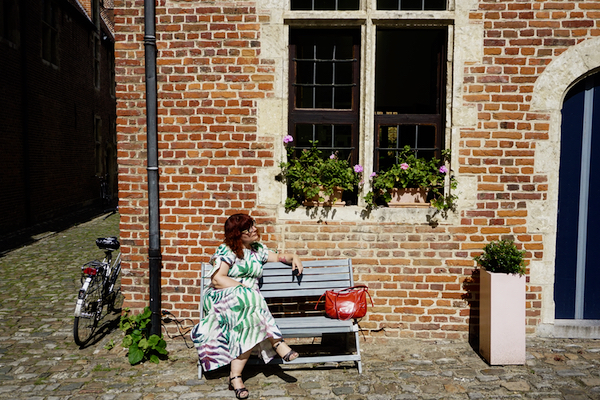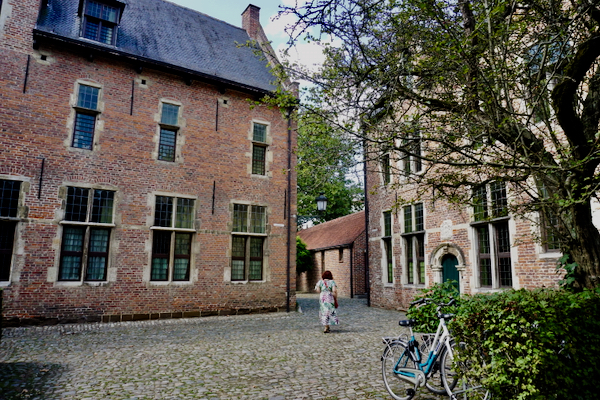 Située à 40 minutes de train de Bruxelles, la petite ville flamande de Louvain possède non pas un, mais deux béguinages. Le plus grand, qui date du 13ème siècle, est aujourd’hui le quartier d’habitation des étudiants et des professeurs de la plus ancienne université catholique d’Europe. Mais le premier jour de septembre, les cours n’avaient pas encore repris, et malgré la météo idéale pour une promenade, on ne croisait pas grand-monde dans ses ruelles: quelques touristes âgés qui peinaient à négocier les pavés extrêmement inégaux, un couple d’amoureux qui volait des bisous dans tous les coins, deux ou trois courageux-mais-pas-téméraires qui avaient mis pied à terre et poussaient leur vélo. Tout était parfaitement tranquille – les conditions idéales pour improviser une séance photo!