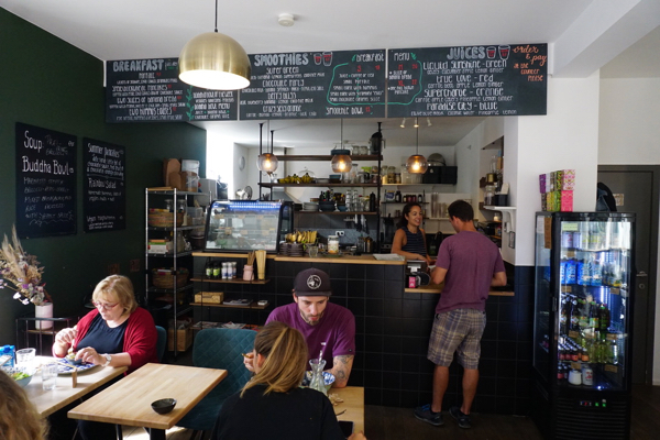 Bien que nous ayions recommencé à manger de la viande deux ou trois fois par semaine après plusieurs années de végétarisme, nous sommes toujours à l’affût de restos vegans où l’expérience nous a appris que nous pouvions nous régaler avec des plats nettement plus sains et digestes que ceux qu’on trouve à peu près partout ailleurs. A l’occasion d’une promenade dominicale dans la ville universitaire de Louvain, nous avons donc décidé de tester le Life Bar sur lequel les avis de clients semblaient excellents, et dont les photos nous faisaient saliver d’avance.