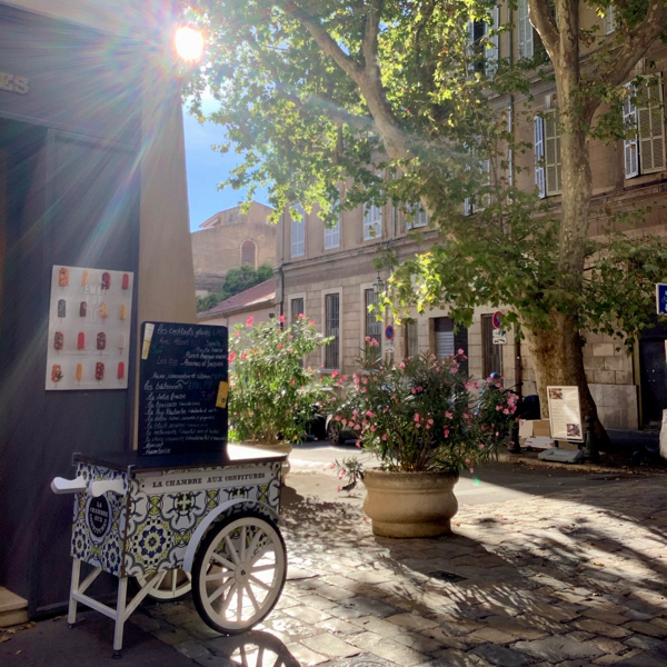 ★ Délicieuse journée à Aix-en-Provence avec Isa, qui m’a rejointe au Book in Bar en fin de matinée. Lunch au resto années 80 Les fils à maman; shopping chez Panier des sens pour nous deux; nouveau craquage chez Carré d’Artistes pour moi (j’aurais pu faire pire – j’hésitais tellement que j’ai failli emporter non pas un mais deux tableaux!); et puis bien sûr, balade dans les jolies rues du centre piéton et papotages à gogo. J’ai beau être une ourse, reprendre un peu de vie sociale avec des gens de qualité, ça fait du bien!