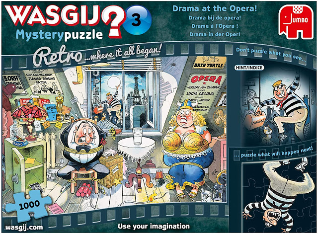 Quand je me suis mise à faire des puzzles au printemps 2019, histoire de m’occuper l’esprit durant une angoissante période de chômage technique, mon amie Sophie-Grosquick m’a fait découvrir la marque Wasgij et son concept original: reproduire une illustration différente de celle de la boîte, mais néanmoins liée. D’abord un peu rebutée par les dessins de style caricatural, j’ai assez vite été conquise par le principe ses différentes déclinaisons. Et comme mon dernier Instagram à ce sujet a suscité beaucoup de réactions curieuses ou enthousiastes, je me suis dit que j’allais faire un billet pour vous les présenter. Forcément, les quelques exemples que je vais vous montrer vous spoileront pour ces puzzles précis.