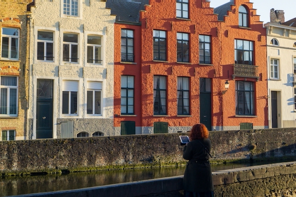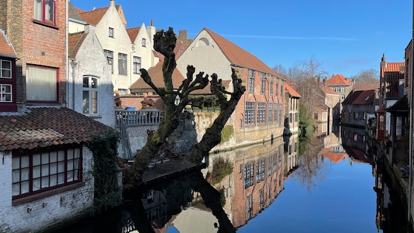 Notre séjour à l’hôtel Orangerie fut donc l’occasion de retourner à Bruges, sans doute la ville belge la plus appréciée des touristes qui y affluent toujours en grand nombre. Pour cette raison même, nous n’y avions pas mis les pieds depuis des années. Mais un vendredi après-midi de l’An 2 du Covid-19, les rues étaient quasi désertes – l’idéal pour prendre des photos. Sans un seul bateau de croisière sur les canaux, il régnait une atmosphère de fin du monde feutrée dans le centre historique.