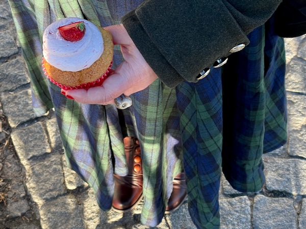 Le thermomètre n’affichait pas plus de 7 ou 8 degrés, mais le soleil brillait dans un ciel pour une fois sans nuages. Si les restaurants, les bars et les salons de thé n’avaient pas été fermés, j’aurais trouvé ça idéal. En les circonstances, nous nous sommes contentés de déambuler un peu au hasard, de manger notre goûter (des gâteaux de chez Heavenly Cakes) sur un banc et de rentrer à l’hôtel quand nos vieilles jambes ont commencé à protester qu’elles n’avaient plus l’habitude de marcher autant.
