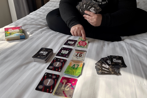 The Game peut se pratiquer en solitaire ou avec jusqu’à 5 joueurs. Les parties durent une vingtaine de minutes et sont juste assez casse-tête pour que je les trouve excitantes mais pas chiantes. Franchement, c’est un jeu addictif: au début, on échoue avec une grosse marge, puis une marge plus étroite, ce qui donne envie d’enchaîner les parties jusqu’à ce qu’on réussisse enfin (pour le moment, notre record personnel est d’une seule carte impossible à caser – maudit 60!). Et si jamais on commence à se lasser de la boîte de base, on peut se tourner vers les extensions Extreme ou Duel.