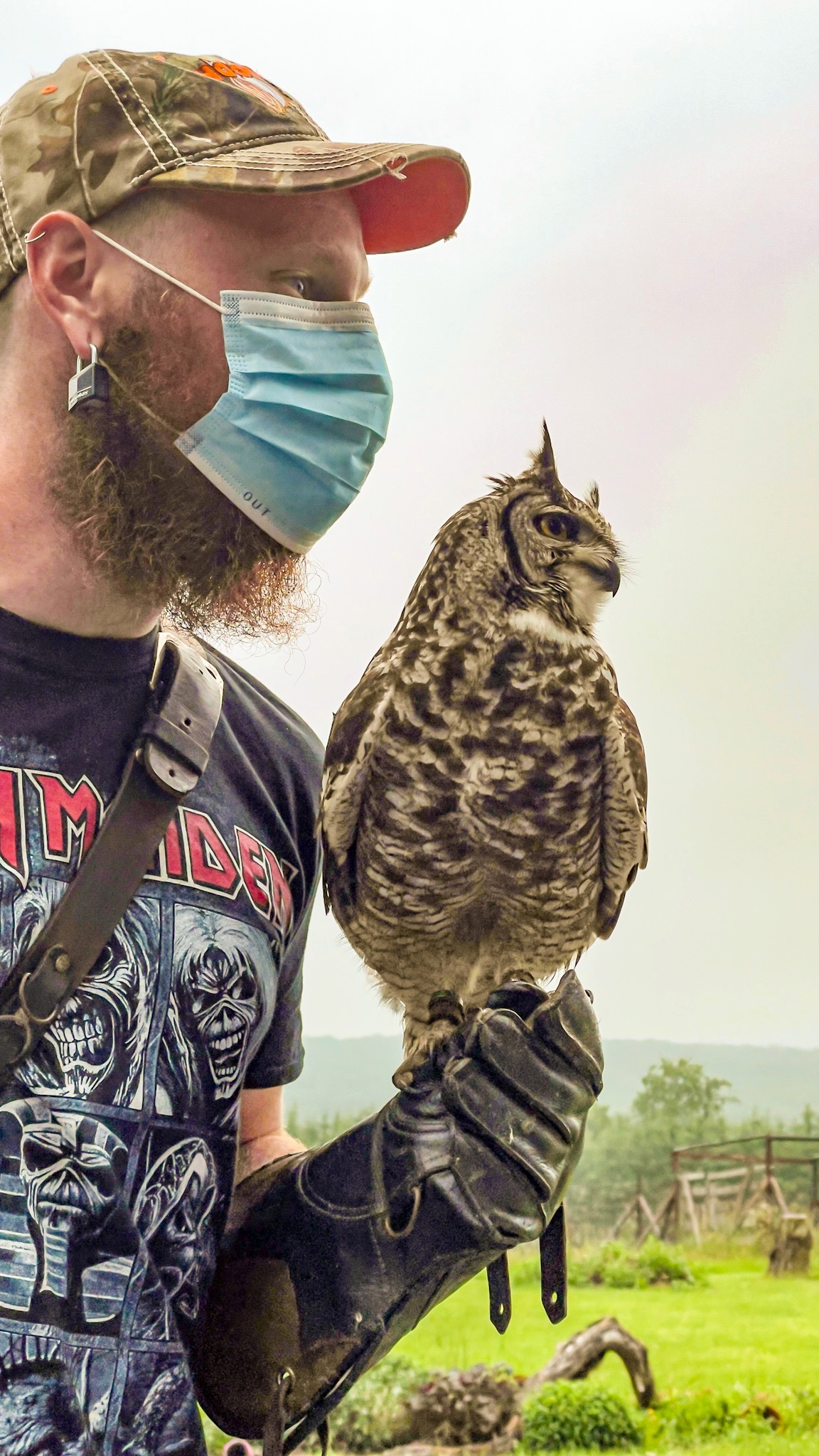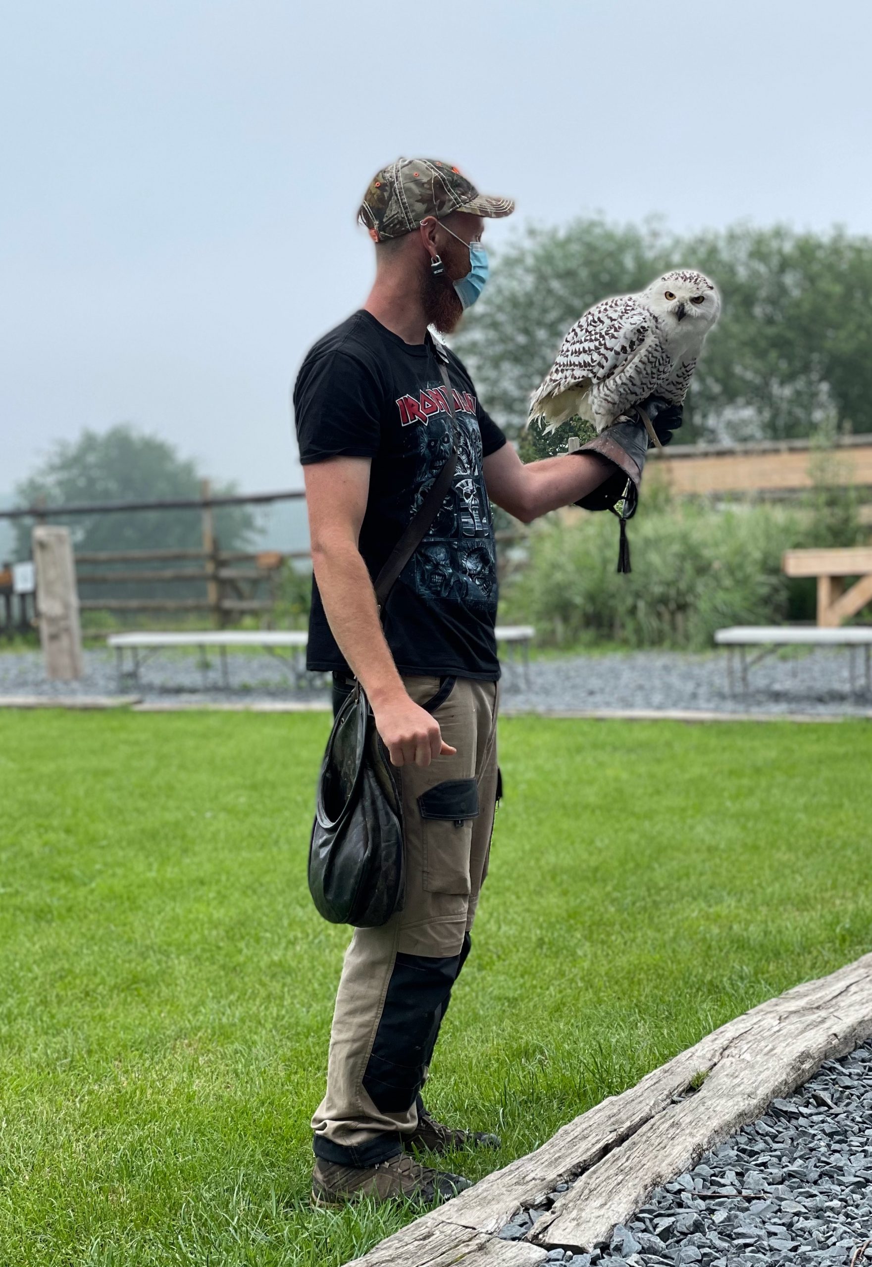 En août dernier, nous nous étions rendus au Jardin des Hiboux pour une journée d’initiation à la fauconnerie. J’en rêvais depuis des années et, après un premier confinement très difficile pour moi et un été plein de tensions dans mon couple, ça avait été un moment merveilleux, un éblouissement à partir duquel j’ai commencé à remonter la pente du gouffre dans lequel je m’étais laissée tomber. Eperdue de reconnaissance, j’avais immédiatement envoyé des sous pour parrainer deux des oiseaux en mon nom et celui de Chouchou, ce qui nous donnait le droit de revenir plus tard pour passer une demi-journée privilégiée avec nos filleuls. Mais la pandémie s’attardant, le Jardin des Hiboux est resté longtemps fermé au public. J’ai repris contact avec eux le mois dernier et appris qu’ils n’organiseraient pas de demi-journée parrains avant septembre, ce qui me paraissait très loin; alors à la place, ils nous ont proposé de nous greffer sur une après-midi VIP reprenant certaines des activités qu’on avait faites pendant l’atelier de fauconnerie. Moi, je voulais juste revoir les oiseaux, alors j’ai dit banco.