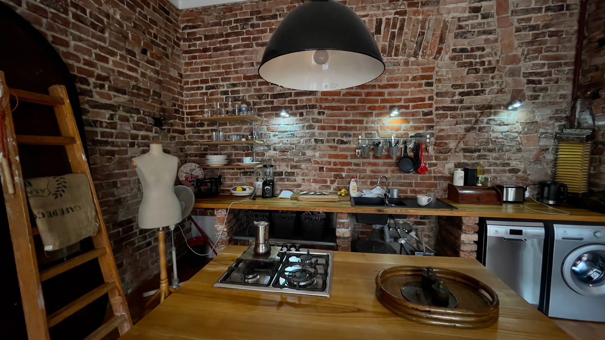 5 ou 6 arrêts de tram plus tard, nous atteignons notre Airbnb où l’ami du proprio nous remet la clé et file sans demander son reste. Le quartier semble sympa et animé, avec beaucoup de restaurants et de supérettes. Quant à l’appartement lui-même, wow! J’en avais proposé deux à Chouchou, un à la déco minimaliste à base de blanc avec des touches roses et vertes, et un autre avec des murs de brique nue et une déco de style industriel. Evidemment, il a opté pour le second. Ca se révèle un excellent choix: c’est un T2 très spacieux, stylé et hyper bien équipé. Pendant que Chouchou file acheter de la lessive (il y a une machine à laver mais la boîte de Persil est vide, et nous sommes en grande pénurie de linge propre), je file à la douche… et inonde toute la salle de bain grâce au génie qui a eu l’idée d’accrocher le pommeau à la verticale avec les trous tournés vers le reste de la pièce plutôt que vers un des trois murs. Bon, ben les serviettes de toilette que je viens d’utiliser pour éponger le sol partiront au lavage elles aussi.