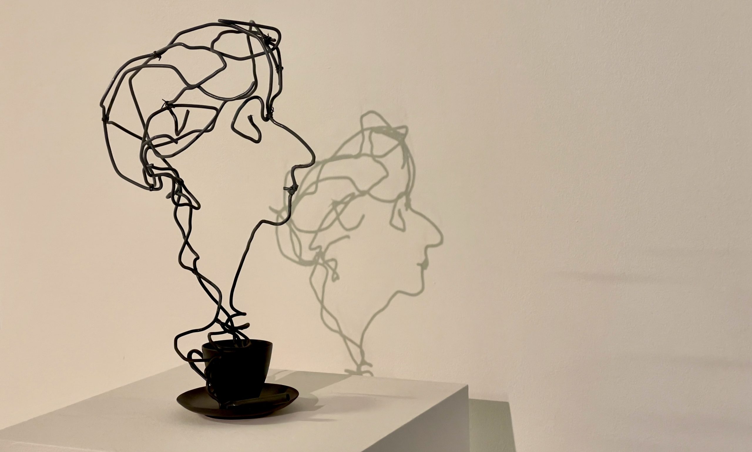 Après avoir marché 40 mn en plein cagnard (Google Maps nous a bien roulés sur la durée estimée du trajet…), nous arrivons dans un bunker minimaliste où nous découvrons que l’expo temporaire en cours est consacrée à l’auto-portrait à travers la pratique de divers artistes depuis les années 70 jusqu’à nos jours. Un sujet qui nous intéresse énormément tous les deux. Et même si nous n’allons pas nécessairement être interpelés par les mêmes oeuvres, l’expo est assez vaste et variée – je veux dire, il y a quand même une dame habillée d’une robe en CRESSON – pour que nous y trouvions tous les deux notre compte. Et au lieu de me moquer comme d’habitude, j’engrange des bouts d’idée dans un coin de ma tête.