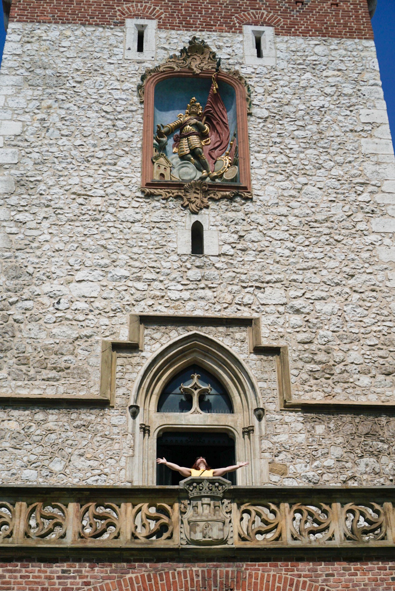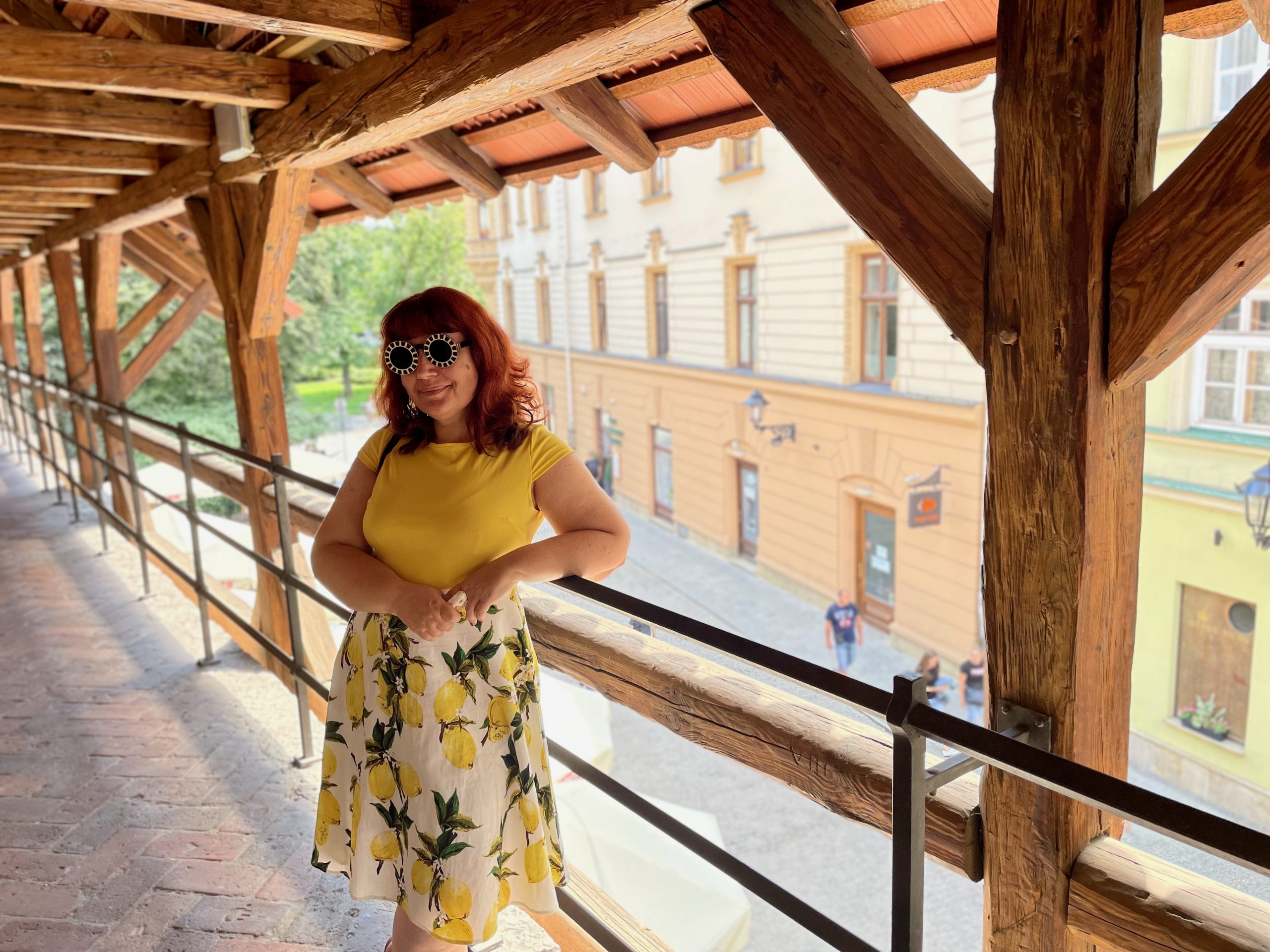 Nous tournons un long moment autour de la barbacane sans en trouver l’accès. Au musée de la ville voisin, où nous tentons de nous renseigner auprès de la dame du guichet, celle-ci nous aboie « Polish only! ». Je suis surprise par l’agressivité systématique des autochtones à qui nous demandons (toujours très poliment) notre chemin. Je peux comprendre qu’ils ne parlent pas anglais – même si ça me semble étrange lorsqu’il s’agit d’employés de lieux archi-touristiques -, mais pourquoi prendre comme une attaque le fait que des étrangers ne maîtrisent pas leur propre langue? Chouchou, spécialiste du tableau d’ensemble et originaire d’un pays où la question identitaire est également forte, me répond avec sagesse que si tout le monde avait tenté de m’envahir et d’effacer ma culture au fil des siècles, je serais peut-être moi aussi chatouilleuse sur la question. Bref, avec un petit coup de main de l’office du tourisme voisin, nous finissons par trouver une porte planquée dans la seule minuscule portion de muraille que nous n’avions pas inspectée.