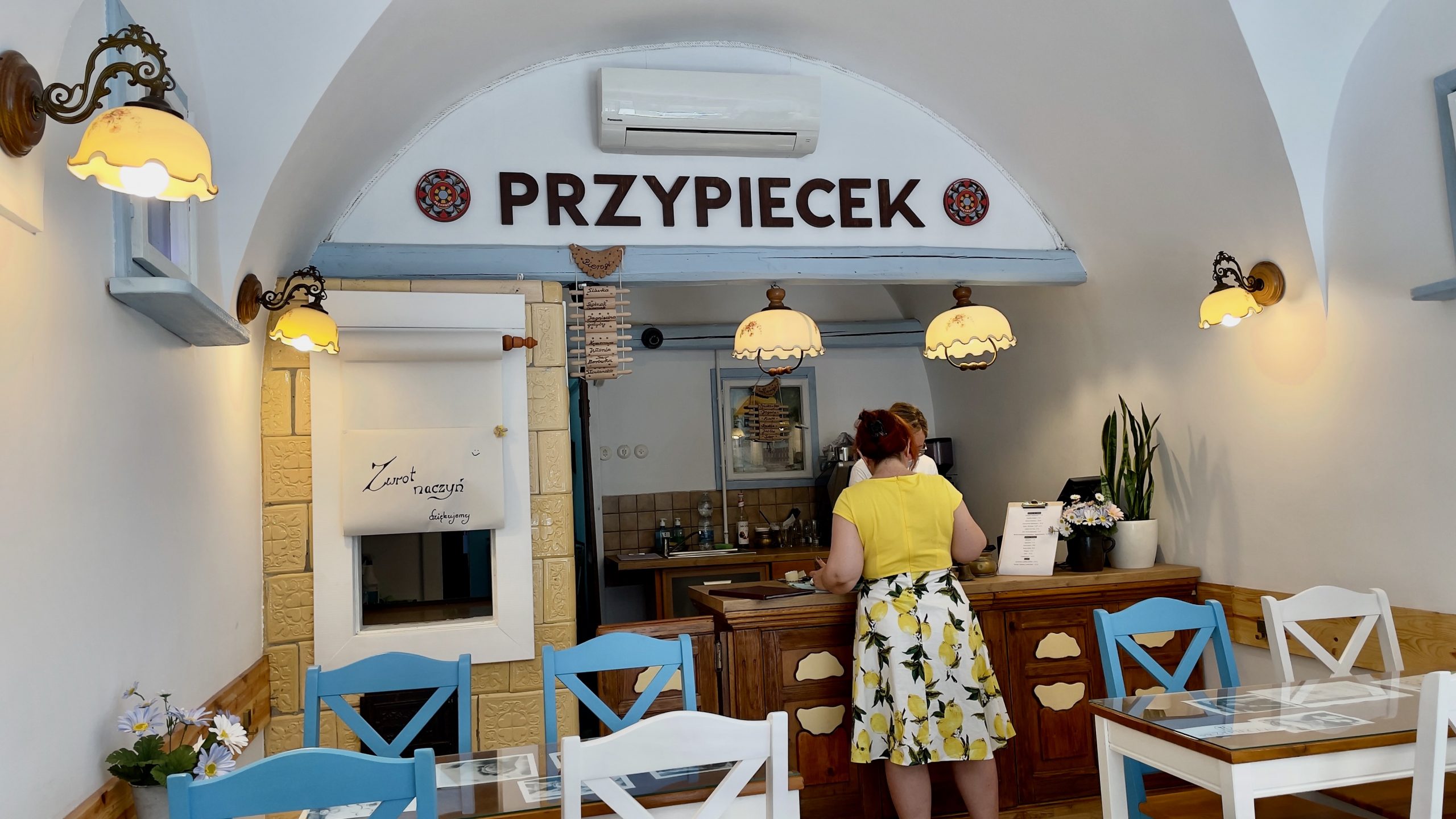 La bonne nouvelle, c’est qu’il fait un peu moins chaud qu’hier. Et aussi, qu’il reste encore la taille au-dessus dans le T-shirt du HRC vis-à-vis duquel j’ai péché par excès d’optimisme hier. La mauvaise nouvelle, c’est que contrairement à ce qu’affirmait mon guide, le musée de la pharmacie n’est pas du tout ouvert le dimanche. Nous nous rabattons sur un déjeuner rapide dans une cantine voisine, Przypiecek, spécialisée dans les assortiments de pierogis délicieux et à des prix ridicules. Par contre, si on est ce que l’on mange, je crains qu’on ne se réveille tous les deux changés en raviolis avant la fin de la semaine.