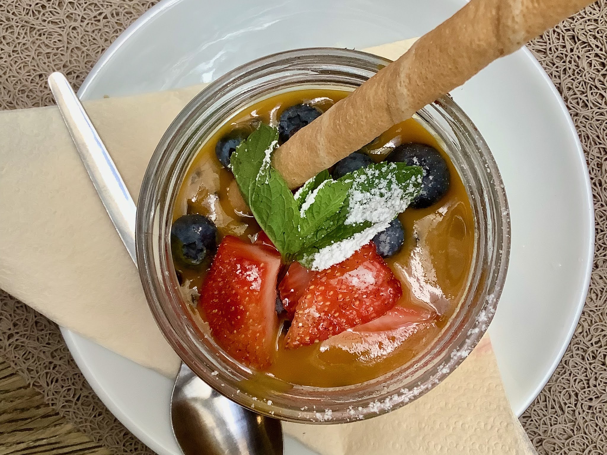 De nouveau, nous tournons dans la vieille ville à la recherche d’un endroit où boire un verre et nous reposer un moment, sans qu’aucun des établissements passés en revue ne me satisfasse. C’est néanmoins l’occasion d’entendre le hejnal, célèbre air de trompette joué toutes les heures – de jour comme de nuit! – depuis le sommet de la basilique Sainte-Marie. Je finis par proposer de retourner à la Maison Hipolit qui a un joli café au rez-de-chaussée. Tout à l’heure, la table qui me plaisait était occupée, et je n’avais pas voulu m’installer ailleurs. Cette fois, elle est libre, youpi! Nous nous installons au milieu des plantes vertes. Ma limonade à la fraise ressemble plutôt à un jus de fraise coupé à l’eau, et mon sernik (gâteau au fromage blanc polonais) arrive dans une verrine, mais peu importe. En revanche, les trois étudiantes françaises qui jacassent super fort dans le fond, je m’en serais vraiment passée. Et quand un groupe de sept personnes dont un bébé bruyant vient s’installer à la table voisine de la nôtre, Chouchou propose qu’on s’en aille pendant qu’il reste encore quelque chose de mes nerfs. (Si quelqu’un se fait la réflexion qu’il a bien du mérite de me supporter: oui, c’est absolument vrai, mais je fais aussi avec ses particularités qui dans certains domaines n’ont rien à envier aux miennes.)