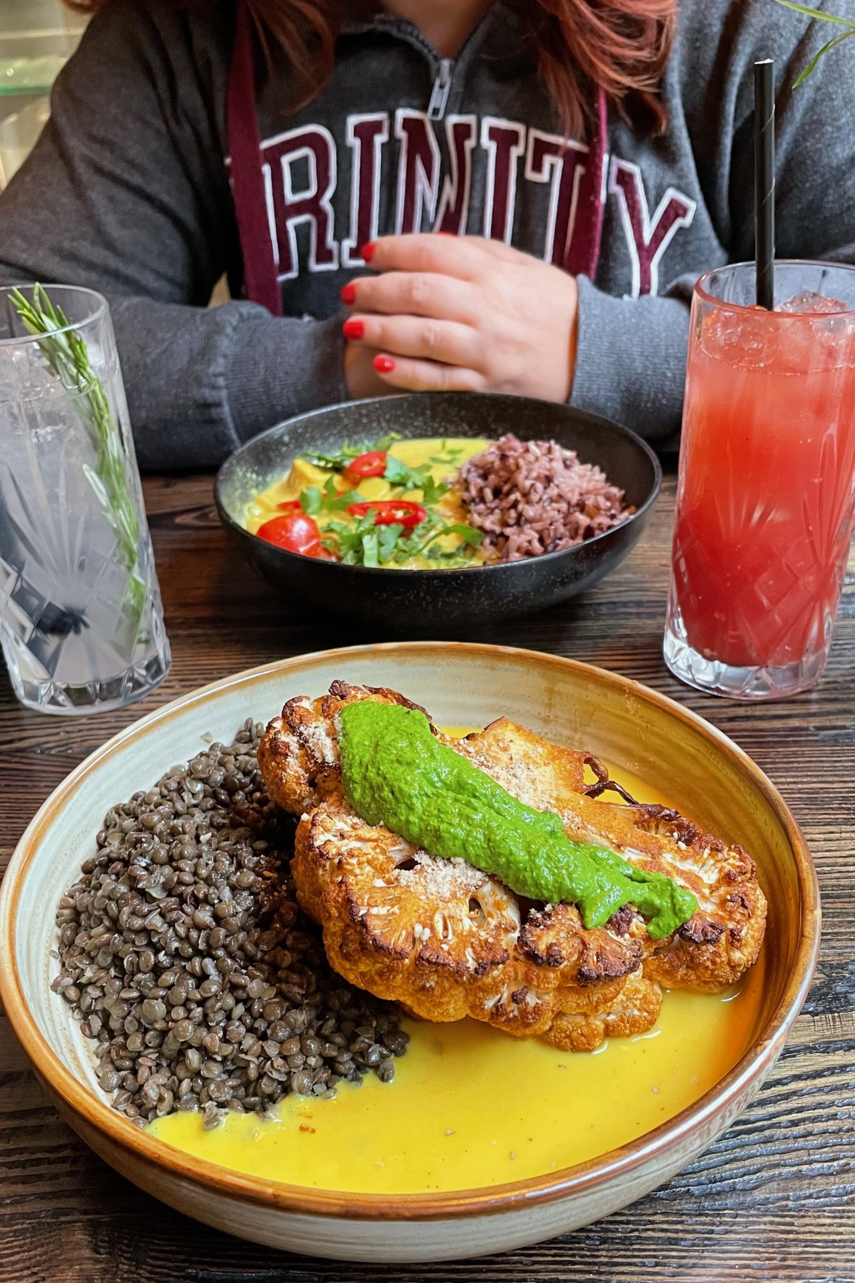 Vers midi, nous traversons la rue pour aller déjeuner au resto vegan d’en face: The Botanist. Pas question de manger dehors avec cette météo; aussi, nous nous installons devant une porte-fenêtre grande ouverte pour compenser. Chouchou commande un steak de chou-fleur mariné à la harissa et moi un curry jaune thaï. Les deux sont absolument délicieux. J’adore aussi ma boisson maison à base de jus de pastèque et d’aloé vera (je sens comme qui dirait une mode locale, mais loin de moi l’idée de m’en plaindre).