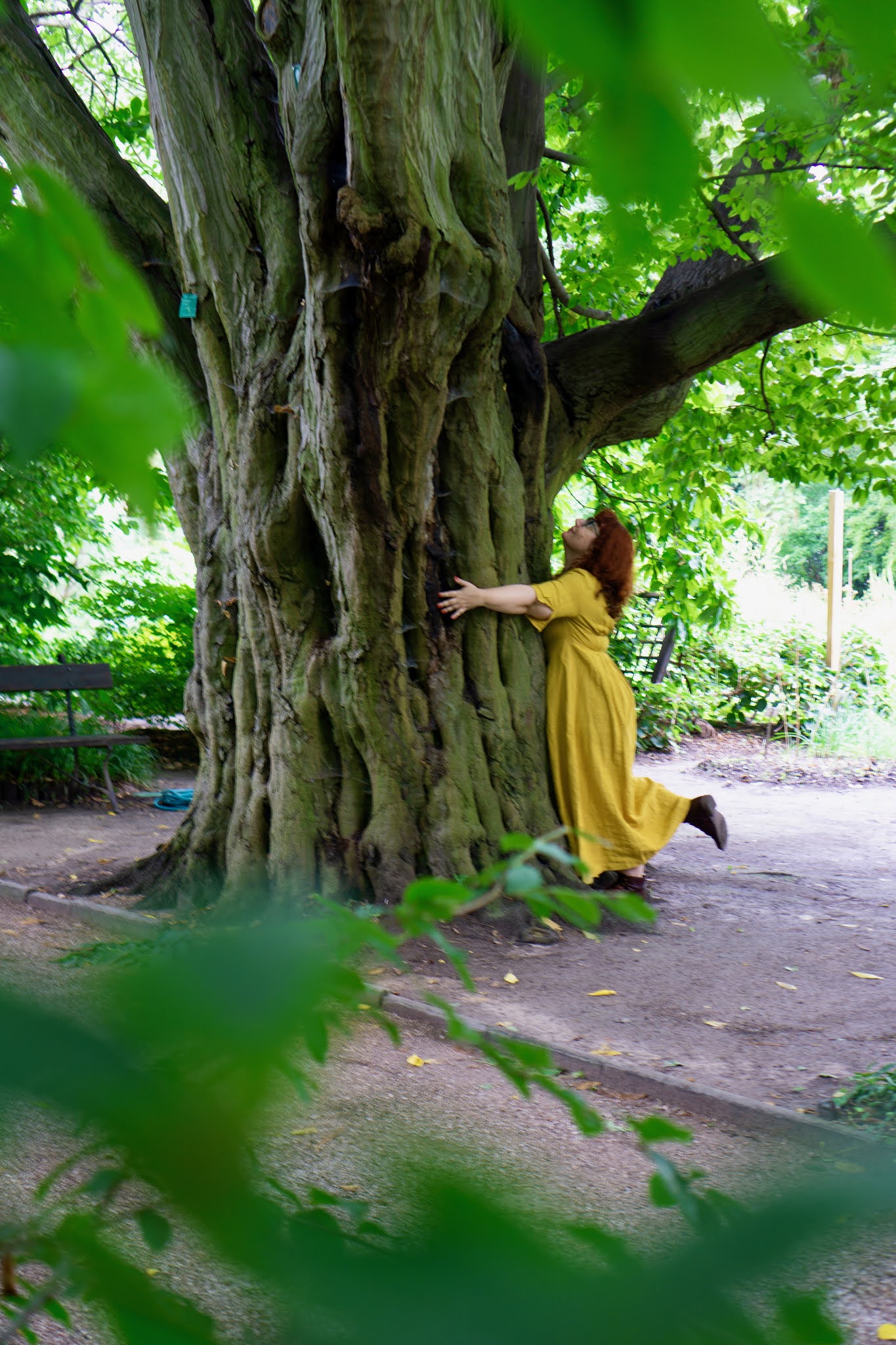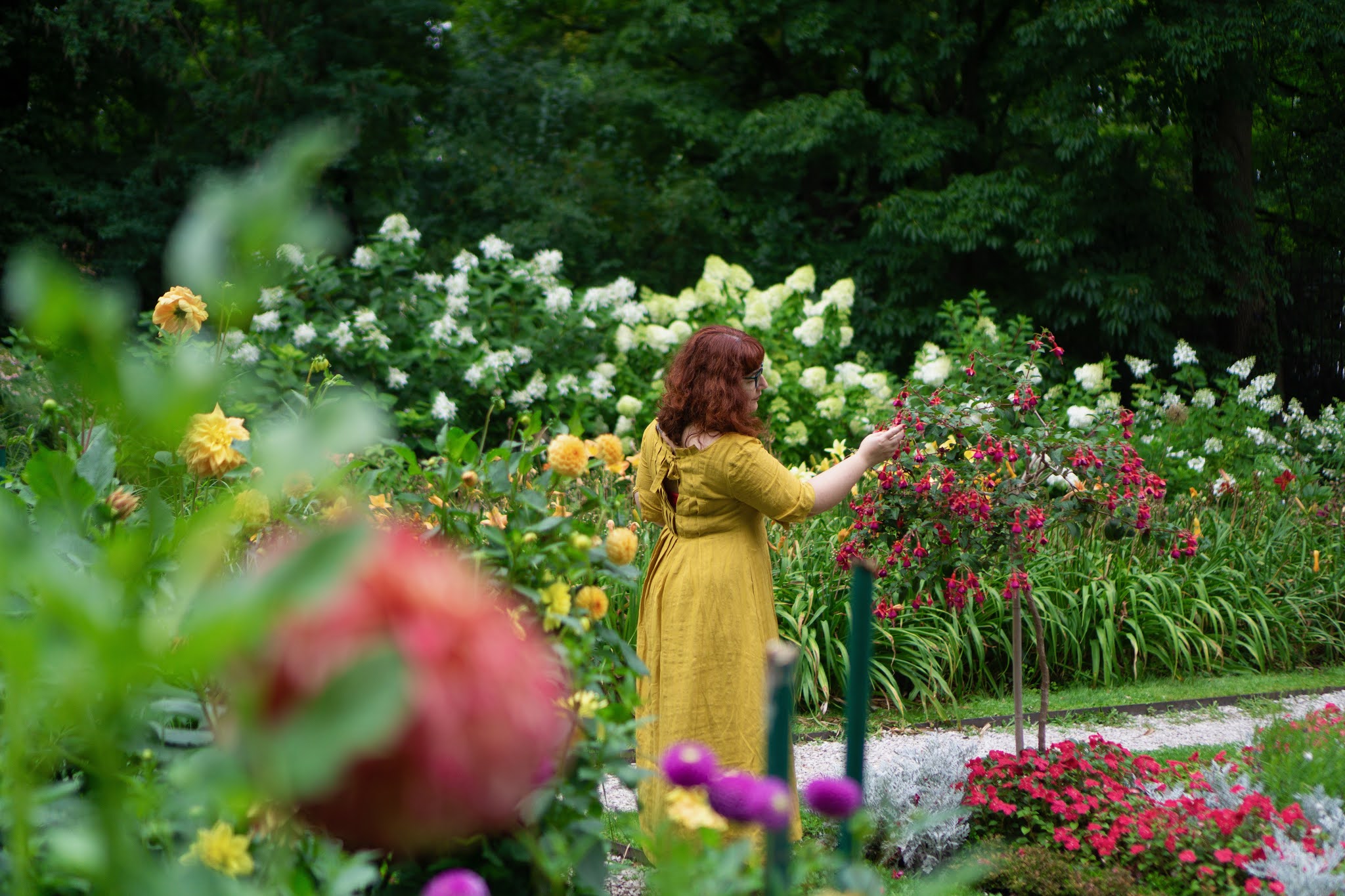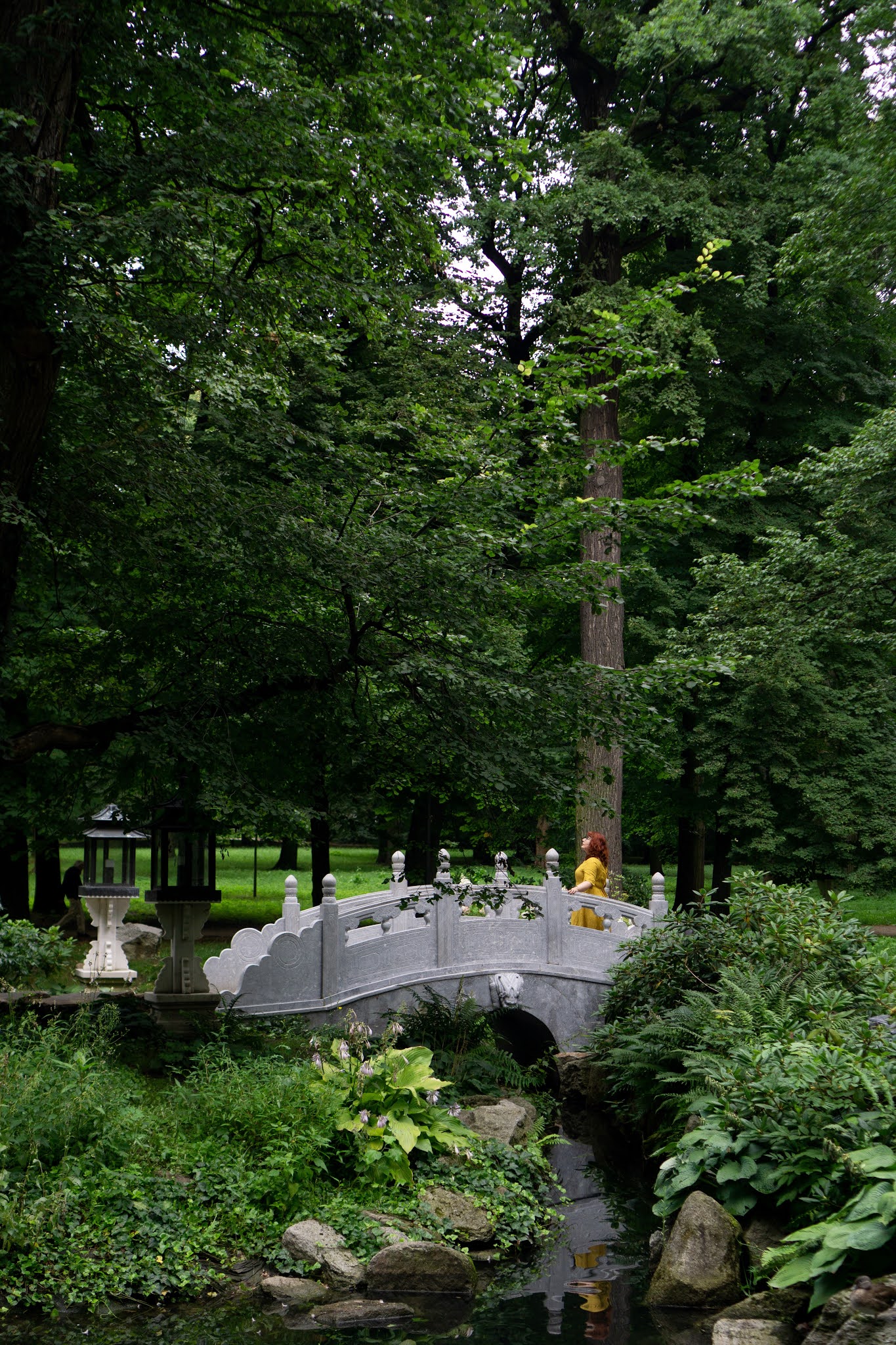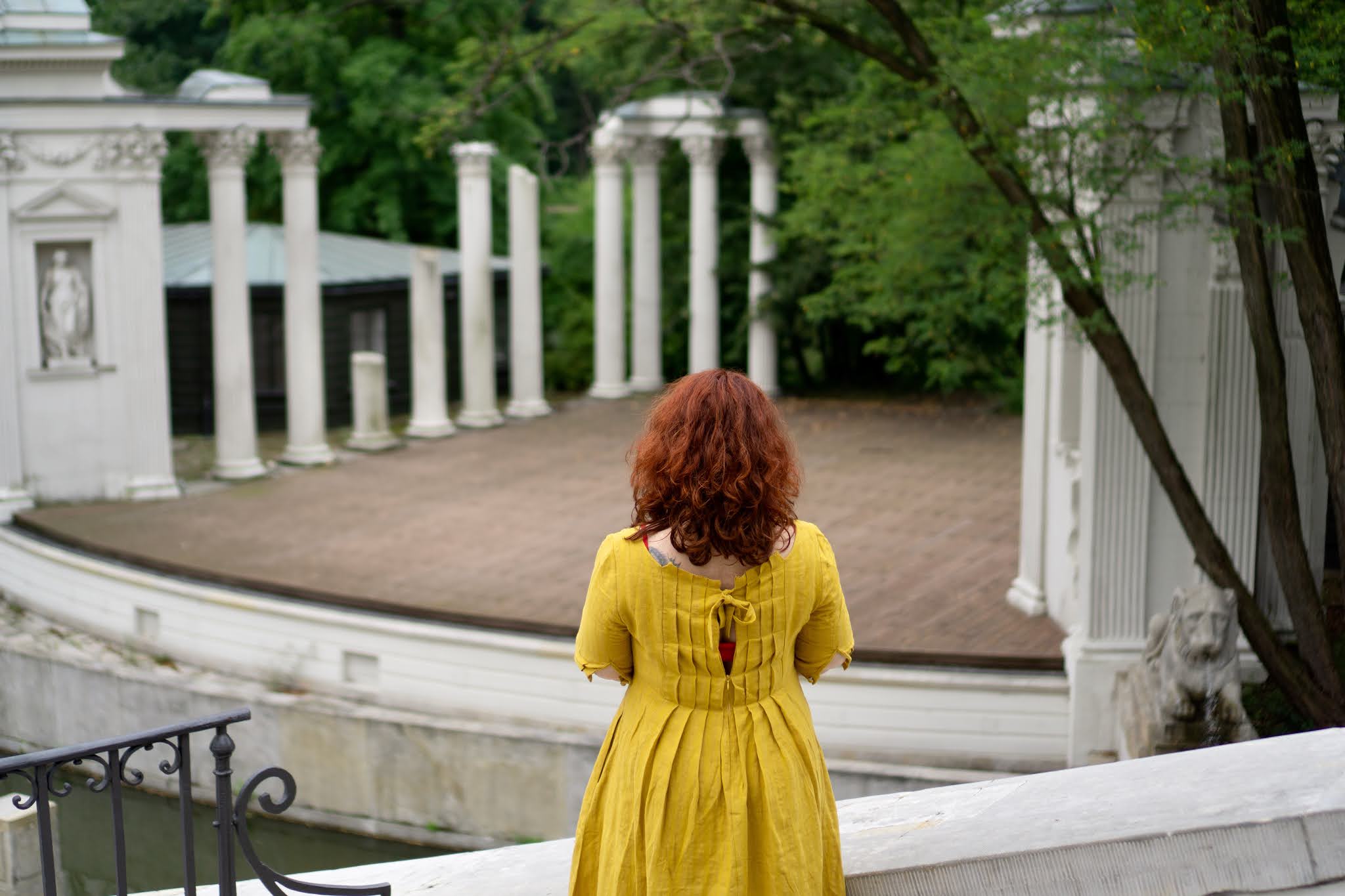 Jeudi matin, pour une fois, nous avons mis notre réveil: il devrait pleuvoir à partir du milieu de la journée (11h selon les organisateurs, 14h selon la police). Nous quittons donc notre studio-hôtel vers 9h et mettons le cap vers le parc Lazienki, alias le plus grand espace vert de Varsovie. C’est un endroit très beau et très calme, idéal pour prendre des photos même par temps couvert. Je déambule dans les allées en agitant la jupe de ma nouvelle robe Linen Naive jaune que j’étrenne pour l’occasion. Les autres visiteurs sont peu nombreux et tout aussi détendus que nous. Sur la terrasse du palais au milieu du lac, une dame aux cheveux en pétard fait du tai chi face à l’eau. Un peu plus loin, deux figurantes en costume historique attendent face à un réflecteur: un tournage est en cours, et un type musclé en T-shirt nous fait signe d’aller jouer plus loin. Nous poursuivons notre exploration par le jardin botanique attenant sans croiser un seul des écureuils ni des paons pour lesquels Lazienki est réputé. En revanche, les deux musaraignes qui m’ont détalé sous le nez, je les ai très bien vues, merci. Je grommelle un peu pour la forme: je suis contente d’avoir pris une dose de flore, mais il me manque ma dose de faune.