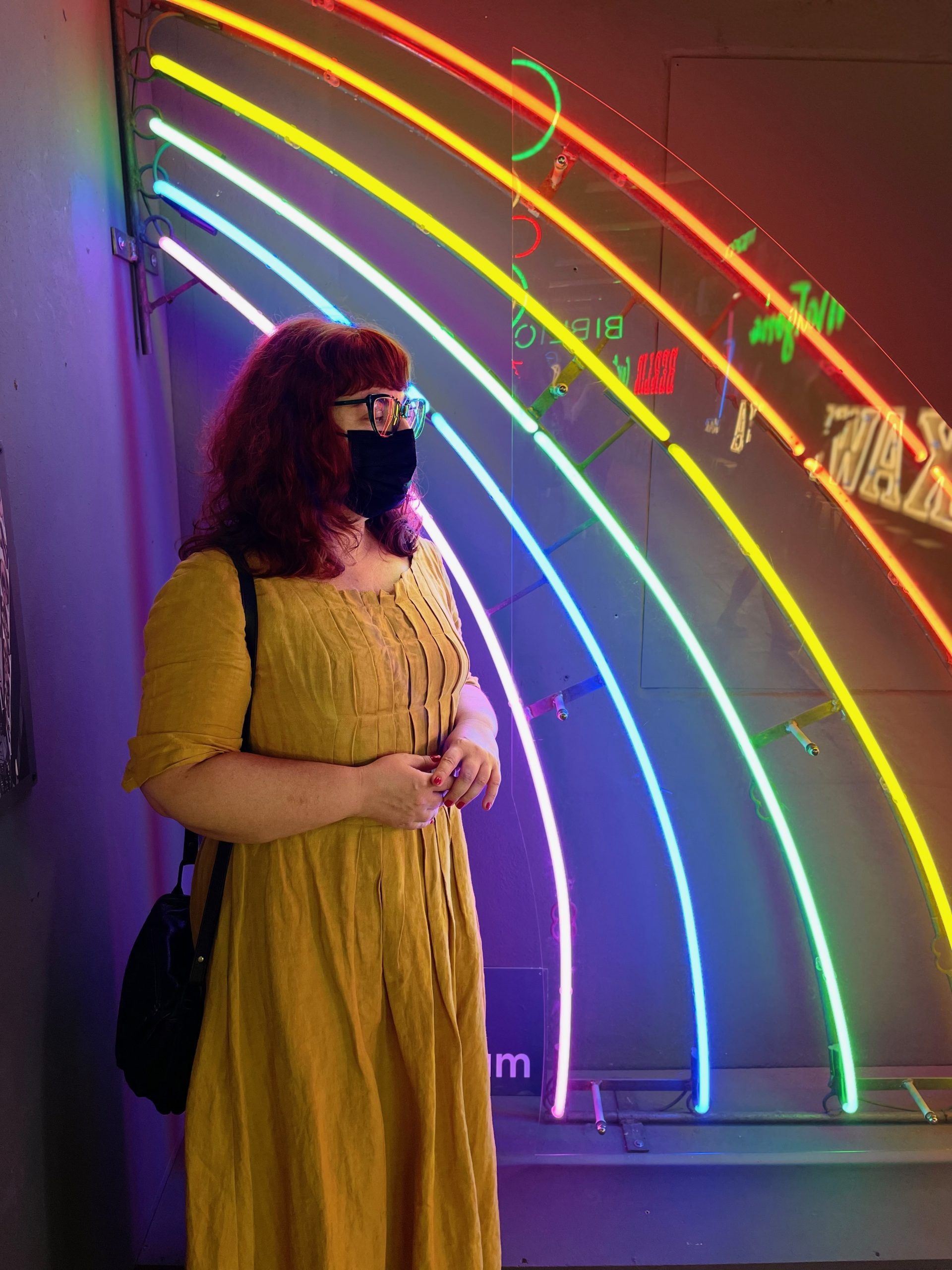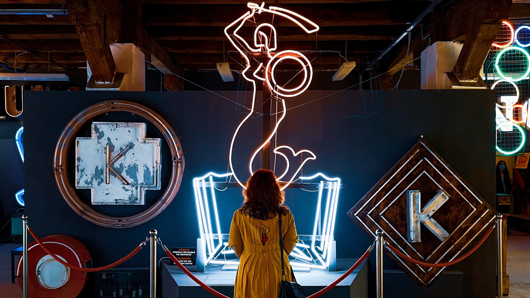 Je propose d’enchaîner sur la suite du programme prévu pour cet après-midi en rajoutant quelques trucs optionnels pour meubler, mais entre-temps, nous avons reçu un texto de la météo locale, qui prévoit de « fortes pluies et inondations » ce soir et une grande partie de la journée de demain. De crainte qu’on soit bloqués au studio, Chouchou suggère plutôt de faire la visite à laquelle on pensait consacrer notre vendredi et qui me fait vraiment très envie: celle de la Soho Factory et du musée du néon. Nous voici donc en train de traverser la Vistule en tram pour rejoindre ce que j’imagine à l’image de la Telliskivi Creative City de Tallinn ou de la X Factory de Lisbonne, un lieu grouillant d’ateliers et de boutiques, de restos et de bars, de street art et de créativité. Au lieu de ça, nous débarquons dans un lieu décrépit et à l’abandon, totalement désert en ce début août. Le musée du néon manque de place pour mettre en valeur sa belle collection dont trop de pièces s’entassent par terre, tristement éteintes, et ses visiteurs qui en moyenne doivent avoir la moitié de notre âge ne portent pour la plupart d’entre eux pas l’ombre d’un masque. Bref, je ressors assez vite, énervée et encore plus déçue.