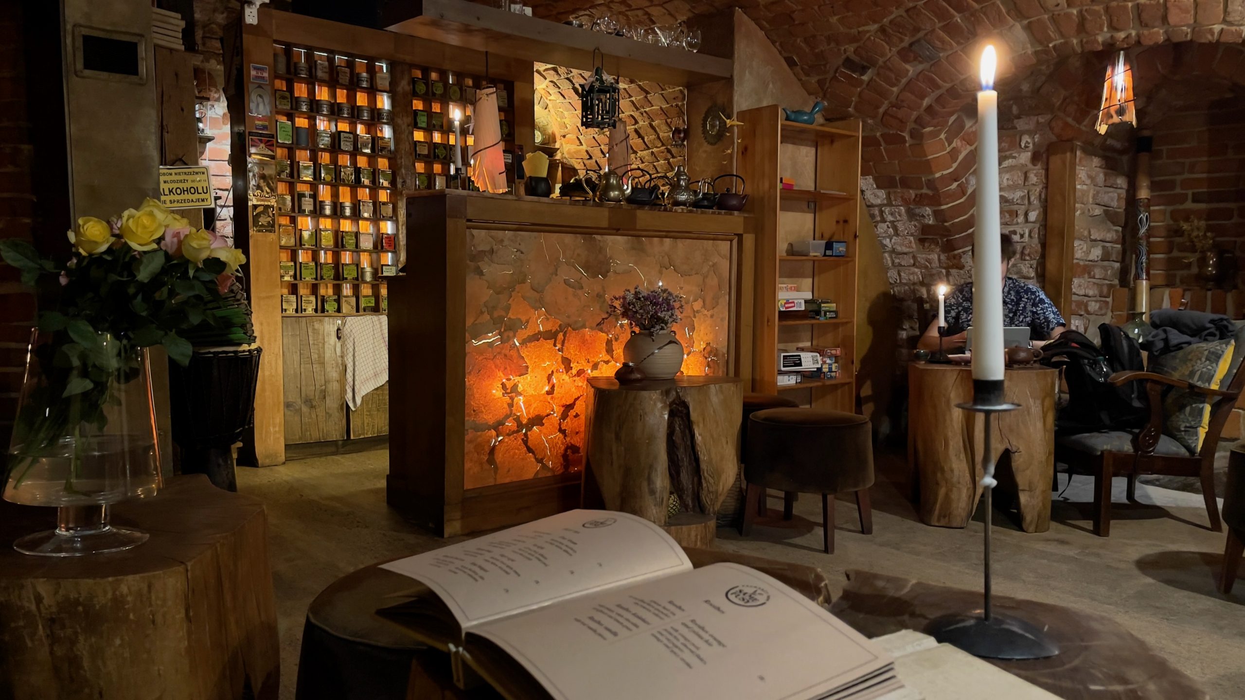 Nous décidons de nous rabattre sur Stare Miasto où il nous reste quelques trucs à faire. Depuis le tram 26, nous apercevons de superbes fresques de street art qui occupent un côté entier de grands immeubles – il y aurait sûrement eu matière à une balade photo à thème. Nous allons nous poser au Same Fusy, un salon de thé installé dans une série de caves en brique qui me rappellent Toulouse. La carte est très impressionnante et le choix difficile. Quant à l’ambiance musicale, on passe d’un crooner polonais à une musique chinoise utilisant un seul instrument nasillard vraiment pénible aux tympans. Qu’importe: nous avons bien profité, et nous sommes prêts à nous remettre en route.