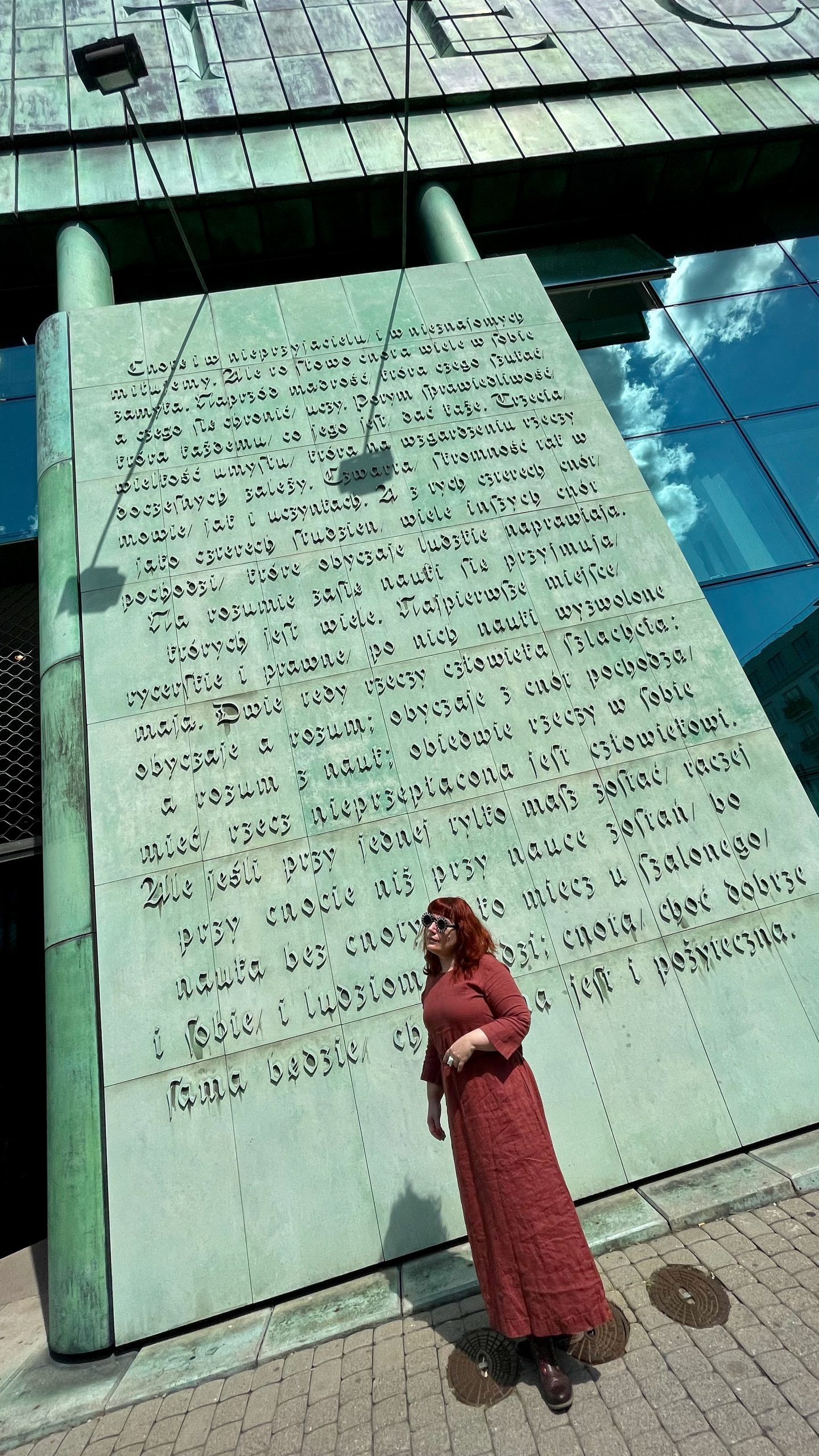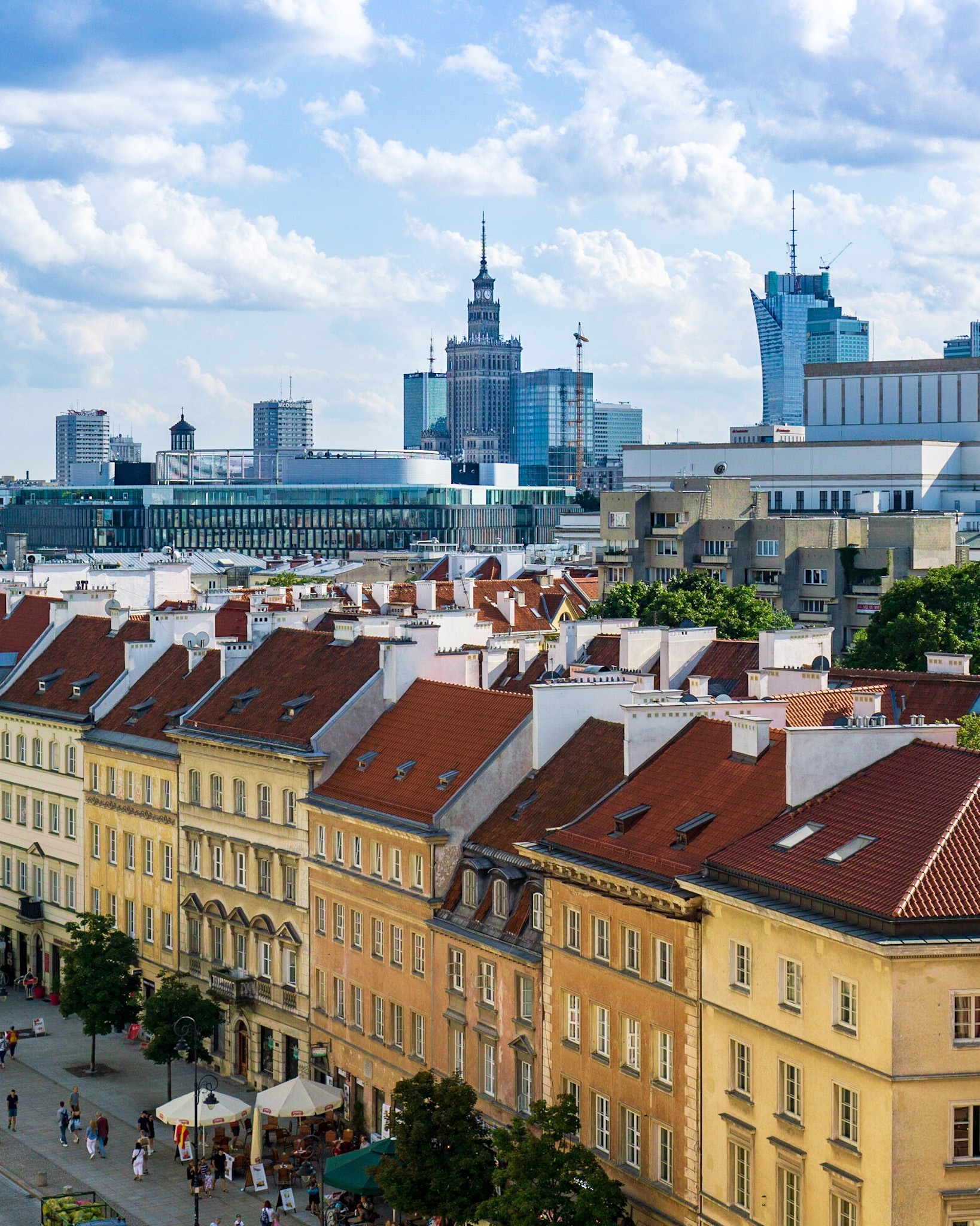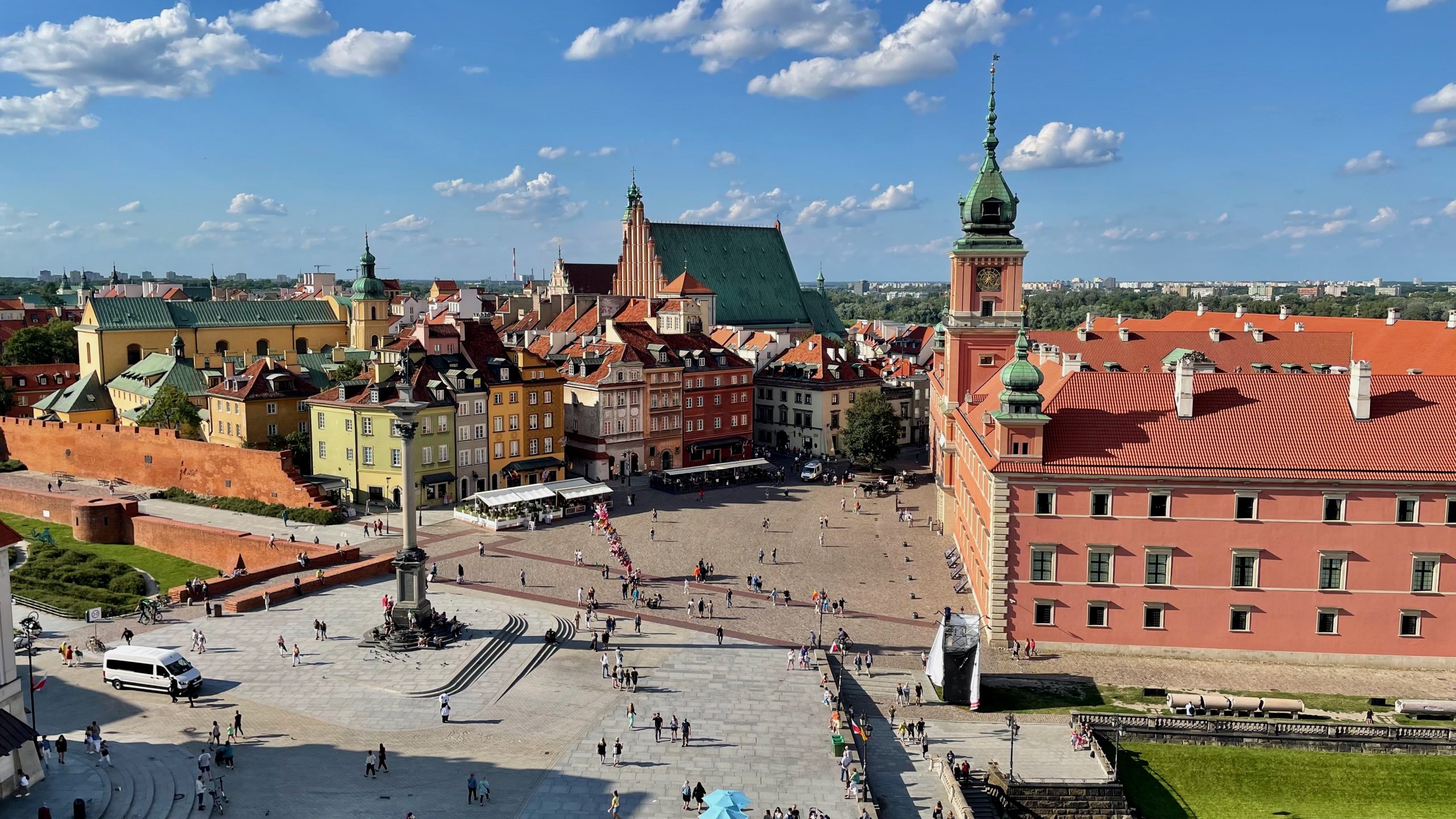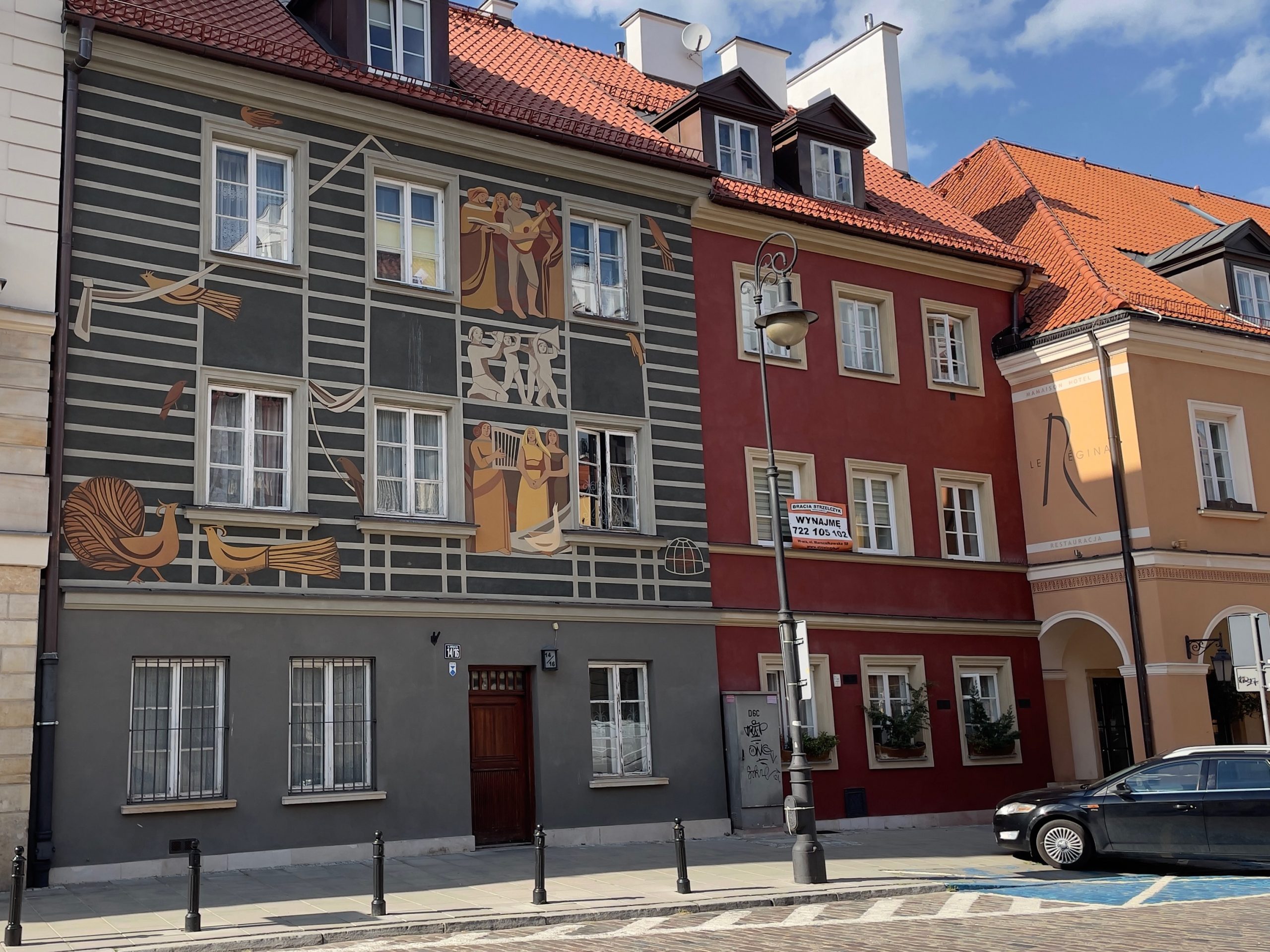 Nous rejoignons ensuite Stare Miasto à pied. Ce trajet est l’occasion de confirmer notre impression d’hier: au premier abord, Varsovie paraît plutôt plate; en réalité, je n’ai jamais monté et descendu autant d’escaliers en l’espace de 24h. Il y a là des superpositions de plans qui donnent le vertige: par exemple, cette autoroute qui passe littéralement sous une des places les plus emblématiques de la vieille ville… Nous nous livrons à une exploration plus poussée qu’hier, incluant notamment un tour des points de vue notables. Il fait de nouveau une météo parfaite, et je suis agréablement surprise de voir si peu de monde – à type d’architecture très similaire, quel contraste avec notre séjour à Tallinn, il y a deux ans à la même époque! Les rues grouillaient littéralement de touristes, alors qu’ici, on a largement la place de ne croiser personne à moins de trois ou quatre mètres. Ce qui tombe bien, car 0% des gens portent un masque en extérieur. Dans les transports en commun et les commerces, ça peut aller, mais dehors, on se croirait en 2019.