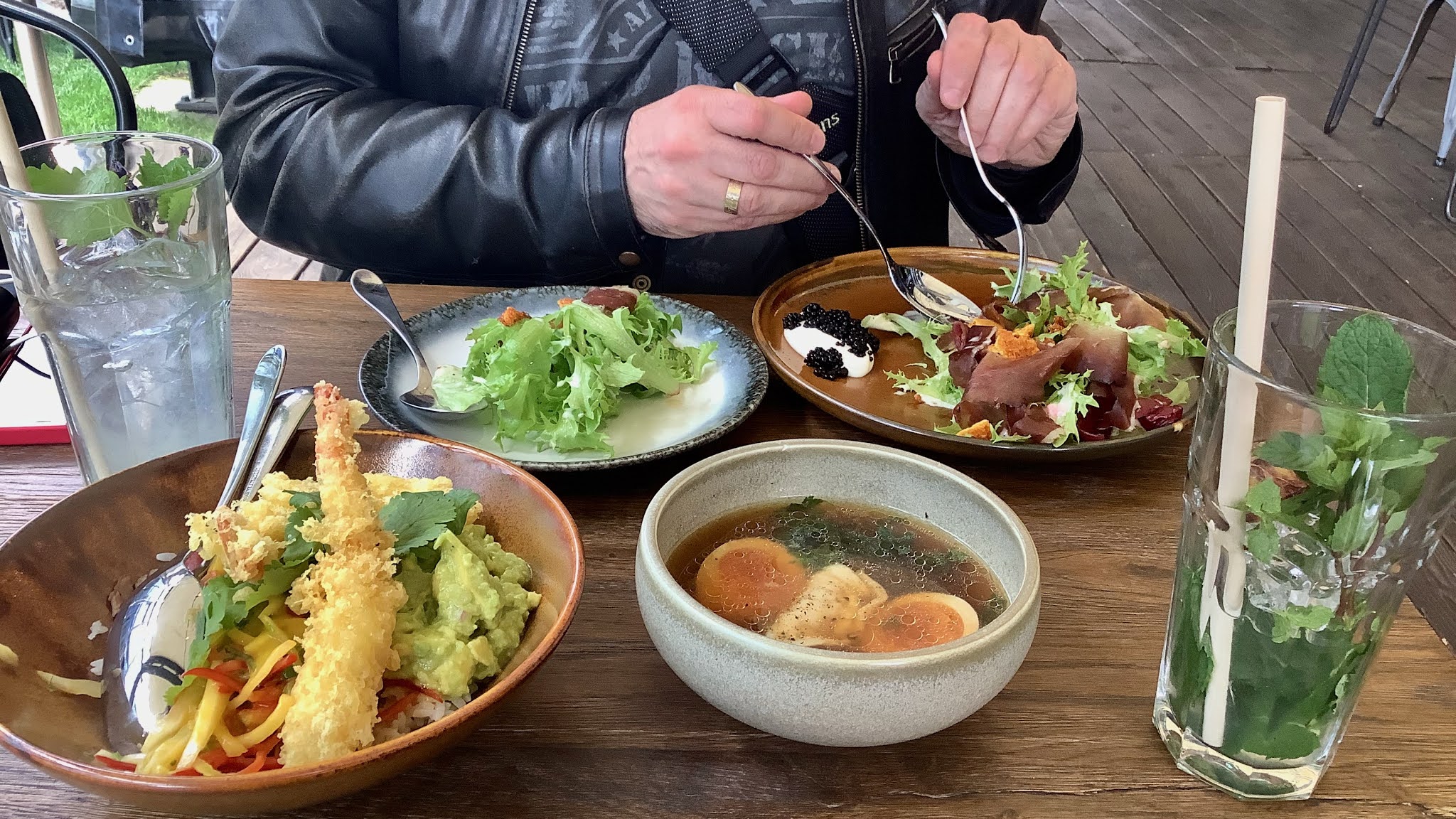 En cherchant où manger le midi près de notre première destination du jour, je tombe sur un restaurant dont le nom traduit en français donne « Sorciers innocents » et dont la carte bien que très peu locale nous séduit au premier coup d’oeil. C’est une excellente pioche. Situé dans un quartier de bureaux aux rues piétonnières calmes et ombragées, le Niewinni Czarodziedje propose comme tous ses voisins une grande et agréable terrasse. Nous nous y partageons une salade de canard, une soupe aux gyoza et un donburi aux tempura de crevettes, tous les trois assez recherchés dans la composition et l’assaisonnement. Je kiffe aussi beaucoup ma limonade à l’aloé vera.