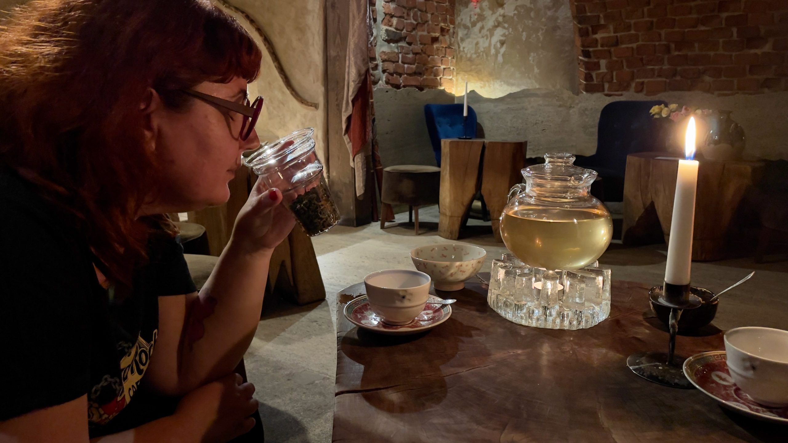 Retour au salon de thé Same Fusy que nous avions beaucoup aimé hier. Cette fois, je jette mon dévolu sur l’Imperial Pearl, un thé jaune au jasmin d’une grande subtilité. La bande-son du jour commence par des chants vikings pour se poursuivre par du folklore irlandais et de l’opérette polonaise. Un vrai tour du monde, ou du moins de l’Europe, sans bouger de notre table basse.