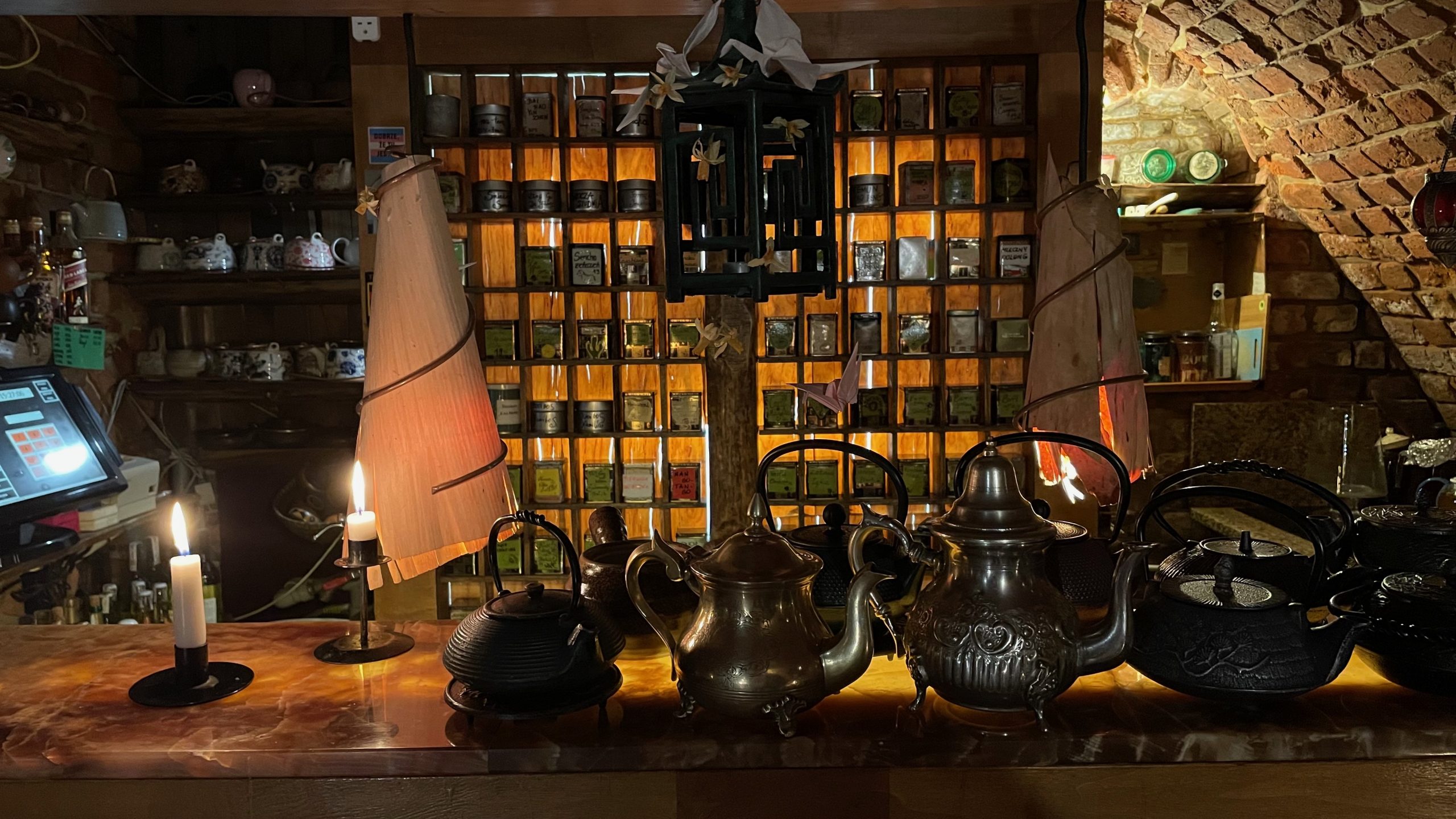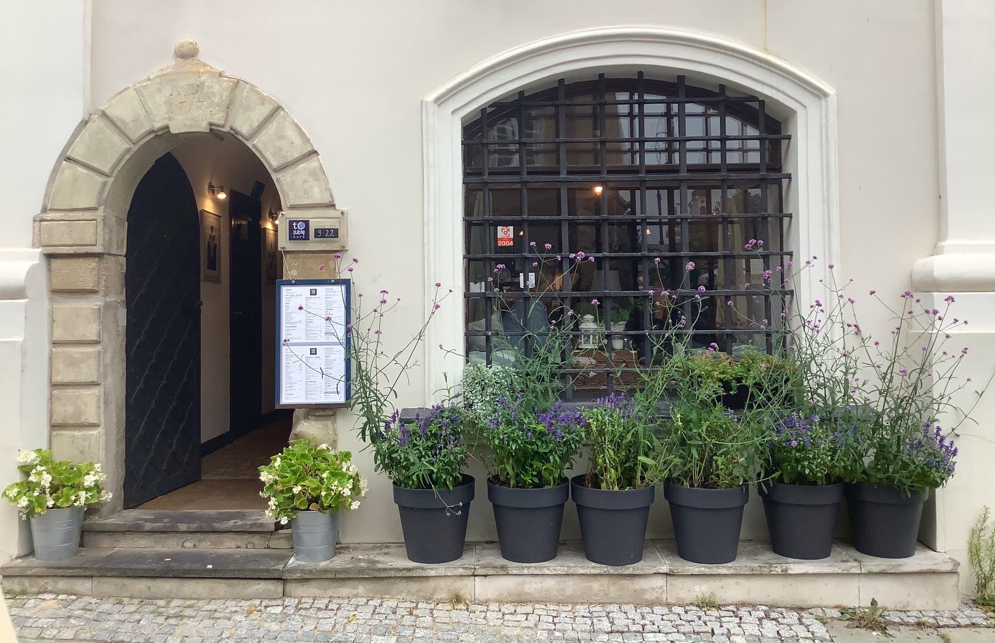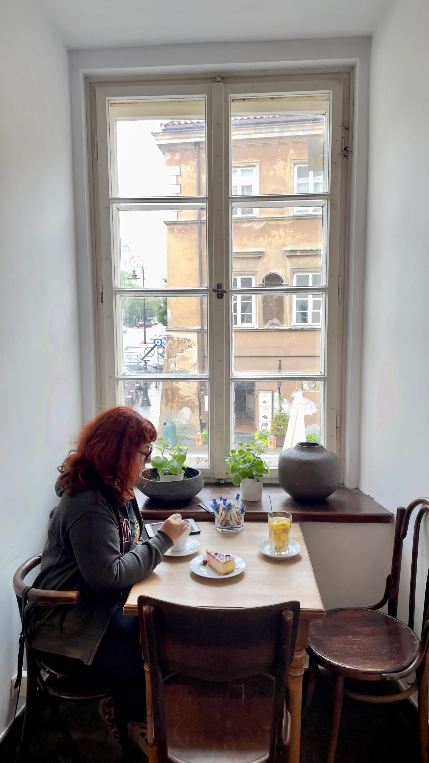 En ressortant de là, j’hésite. Musée de la pharmacie ou autre salon de thé réputé pour ses gâteaux? La flemme l’emporte, et nous hâtons le pas jusque chez To Lubie. Dans une maison à la façade blanche et aux ravissantes fenêtres à petits carreaux, deux salles de poche se superposent au rez-de-chaussée et au premier étage. Nous choisissons de nous installer en haut, et lorgnons les deux filles qui occupent la table près de la fenêtre en attendant le moment de leur départ. Celui-ci ne tarde pas trop, et nous déménageons en emportant mon chocolat chaud au piment et ma tarte au fromage polonaise ainsi que l’infusion chaude au gingembre et l’apple crumble de Chouchou. J’aime bien la musique qui passe, un genre d’électro soft avec une voix féminine; Shazam m’informe qu’il s’agit d’une artiste berlinoise nommée Novaa. (Quelqu’un connaît? Je suis tellement larguée dans ce domaine!) Nous restons là une bonne heure et demie à surfer sur internet, bouquiner et regarder la pluie tomber de l’autre côté de la vitre. Ce genre de moment tranquille fait partie de ceux que je préfère en voyage…