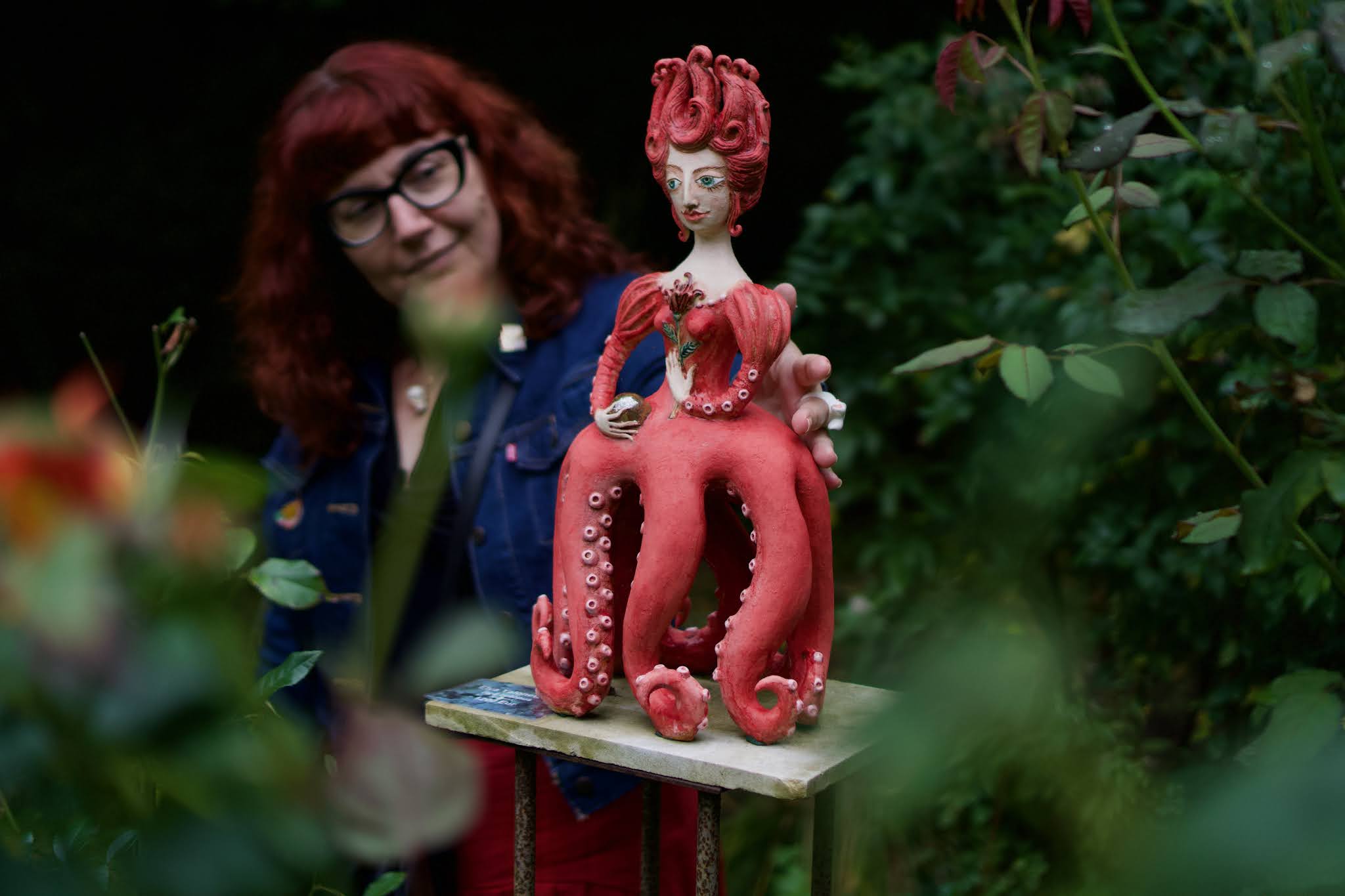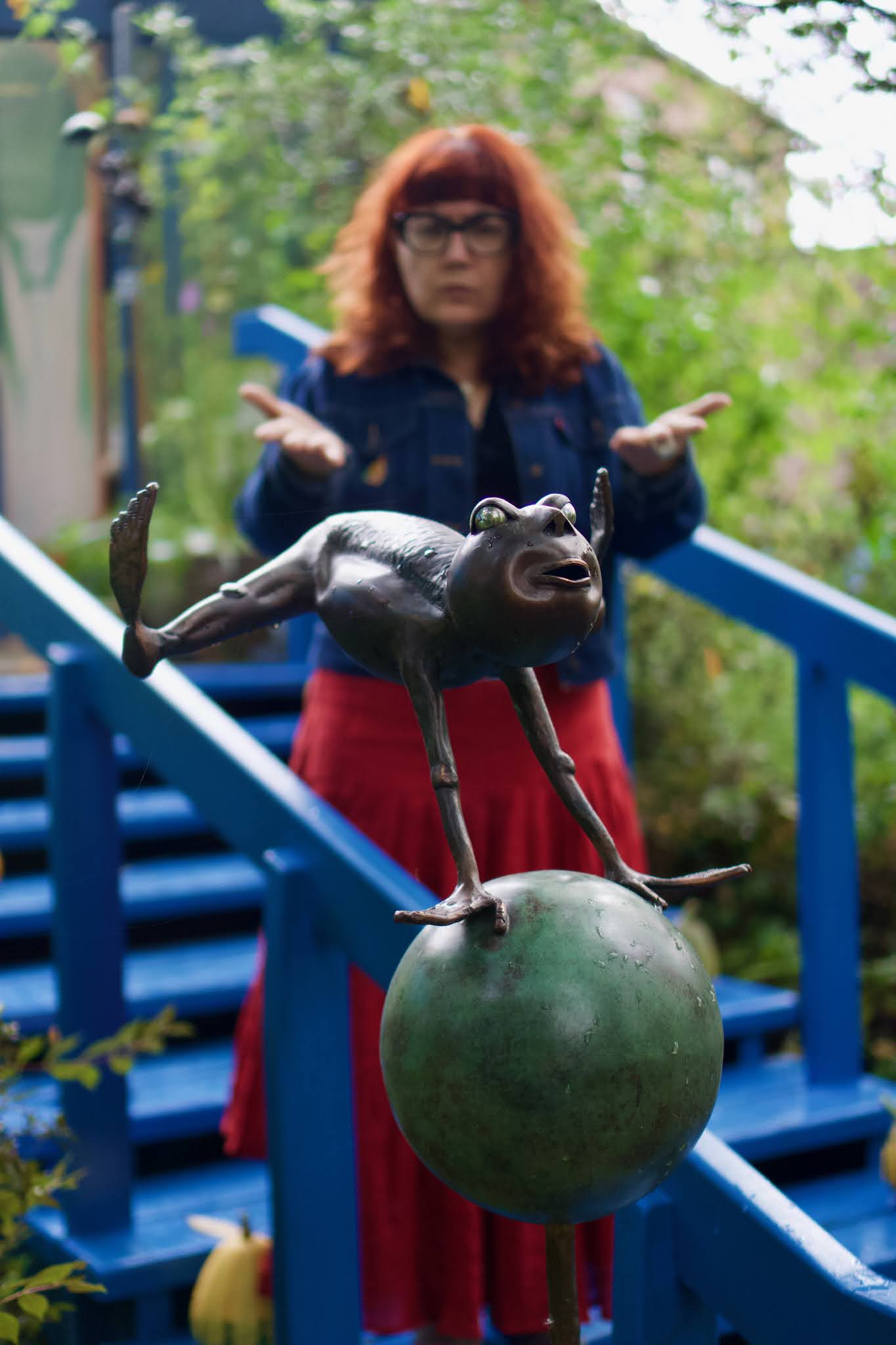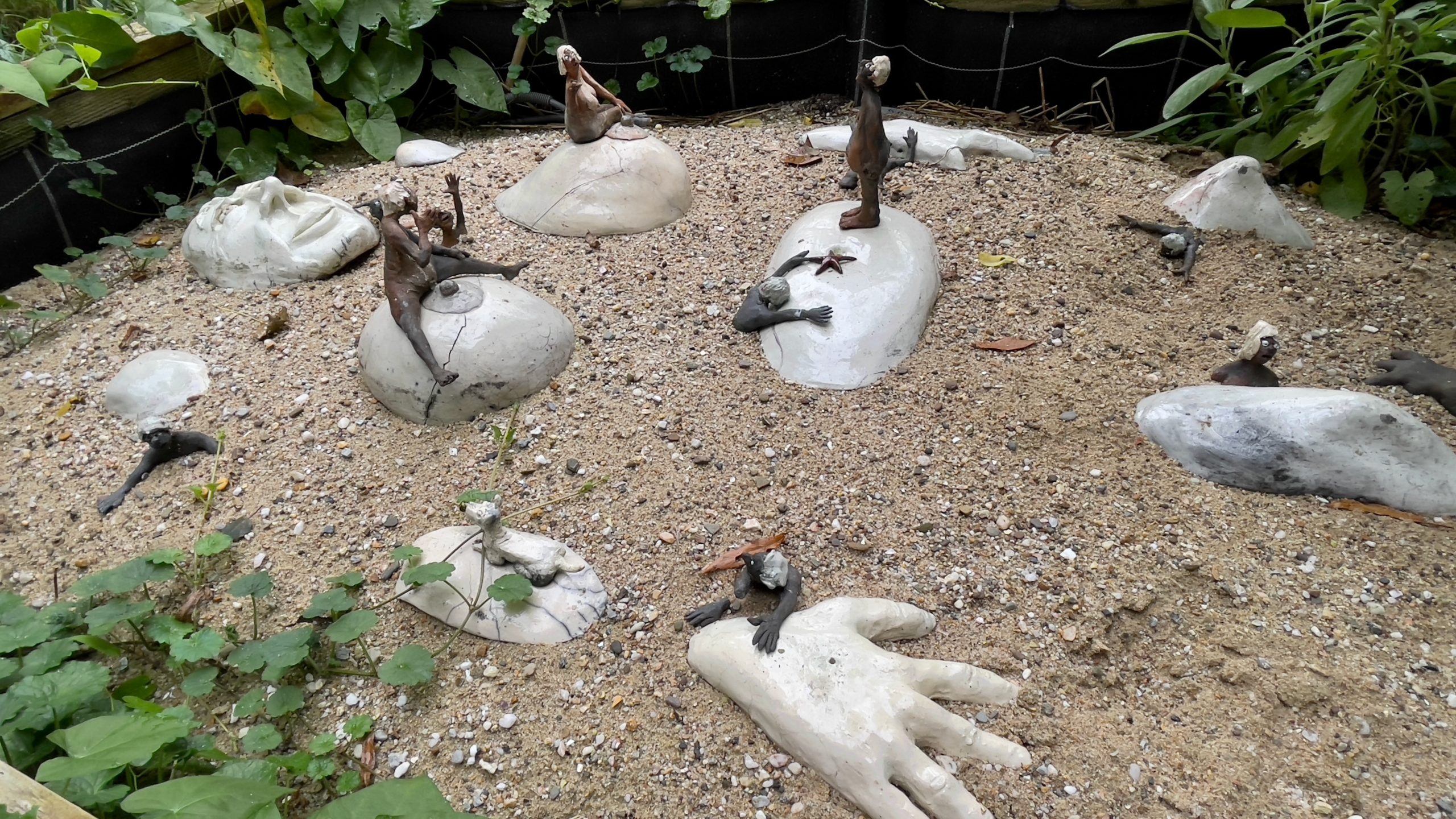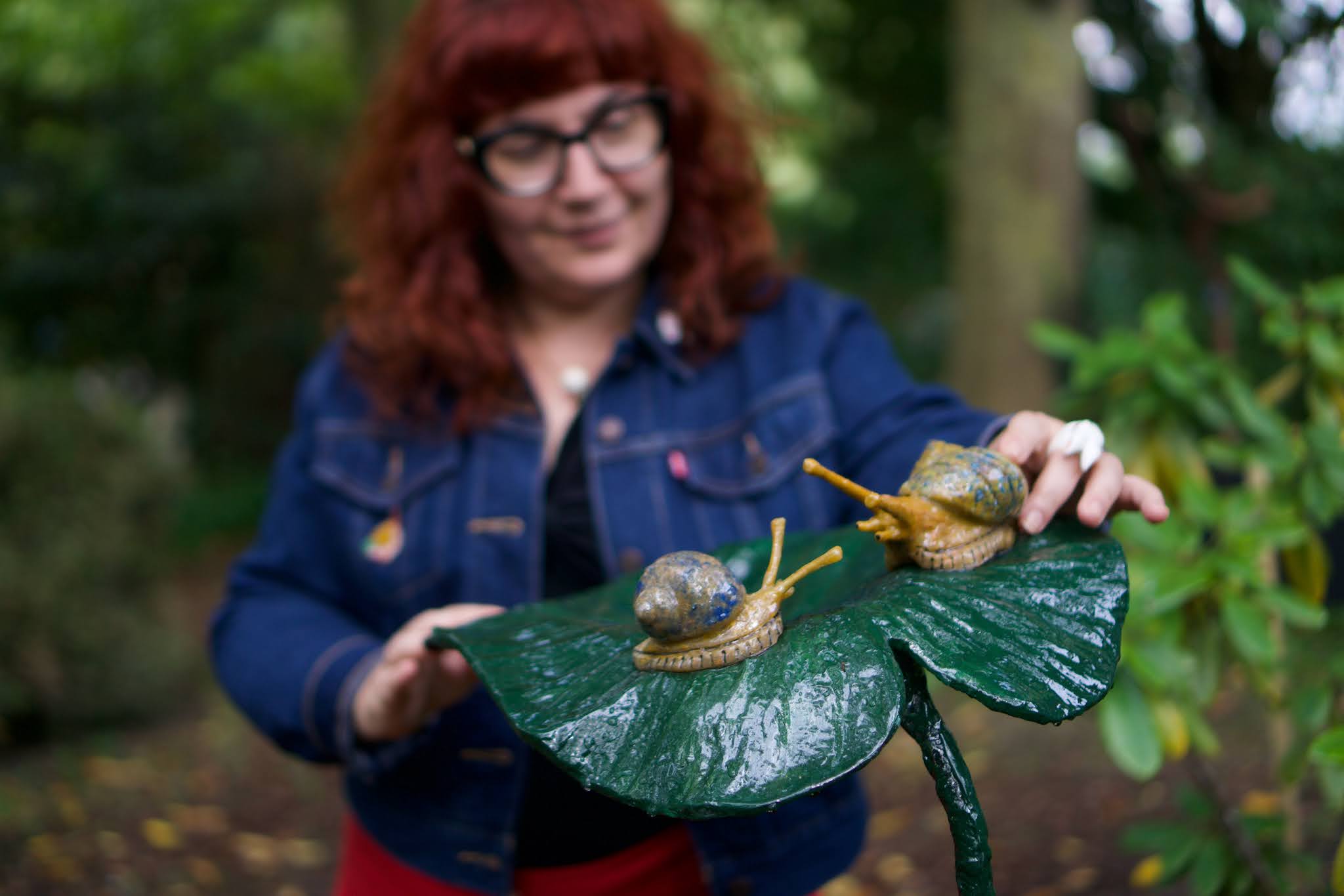 A l’entrée, nous avons payé 8€ (donnant droit, non seulement à un vrai beau ticket que j’ai pu garder en souvenir, mais à une boisson à la buvette). Dès les premiers pas sur le chemin boueux, nous avons compris que l’endroit méritait son nom. Des centaines de sculptures en céramique, en bronze, en terre cuite, en pierre, en fer forgé, en bois ou en verre se nichaient dans les moindres recoins d’un immense jardin-forêt juste assez sauvage pour donner l’impression qu’elles étaient apparues là par magie. Il y avait peu de monde comparé à la surface à explorer, et nous avons déambulé en alternant exclamations de surprise joyeuse et murmures de ravissement.