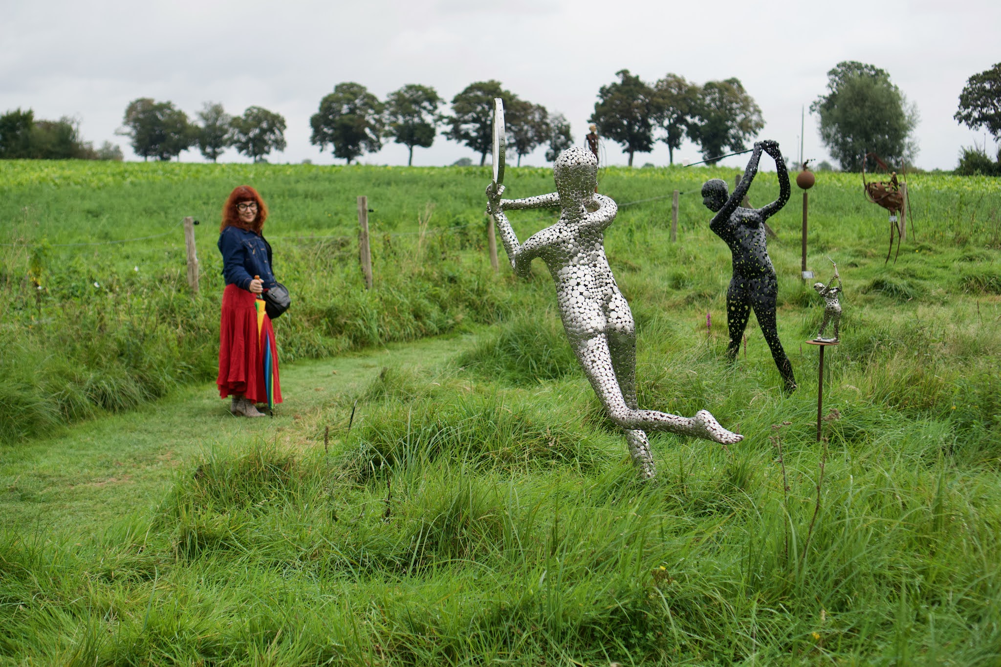 Franchement, en temps normal, j’aurais passé mon chemin. Mais je cherchais un truc à faire la veille de mon départ, et renseignements pris, Jodoigne ne se trouvait pas loin de Bruxelles… J’ai décidé de tenter le coup. Bien qu’assez dubitatif, Chouchou a accepté. Le jour même, alors qu’on roulait sur l’autoroute, on s’est pris une énorme saucée; j’ai failli dire « Laissons tomber et rentrons à la maison ». Mais si 15 ans de Belgique m’ont appris quelque chose, c’est que la météo peut changer radicalement d’une minute sur l’autre. Et de fait, même si le ciel restait couvert, il ne pleuvait plus du tout quand nous nous sommes garés près de l’entrée de l’Art Sanctuary.