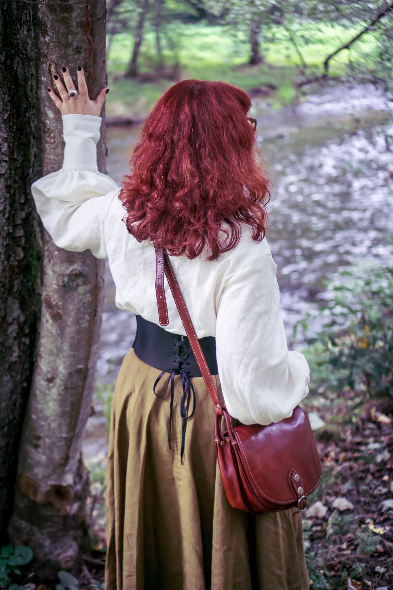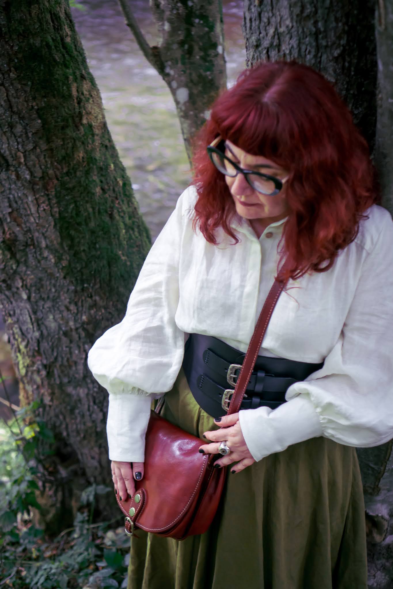 Je n’avais pas acheté de sac depuis deux ans. Un peu parce que la pandémie ne me laissait pas tellement d’occasions d’user ceux que j’avais ou de m’en lasser; un peu parce que la seule pièce que je n’avais pas déjà dans ma garde-robe et dont j’aurais eu envie pour compléter mes nouvelles tenues cottage core, c’était une gibecière en cuir marron, et que je n’en trouvais nulle part qui soit à mon goût.
