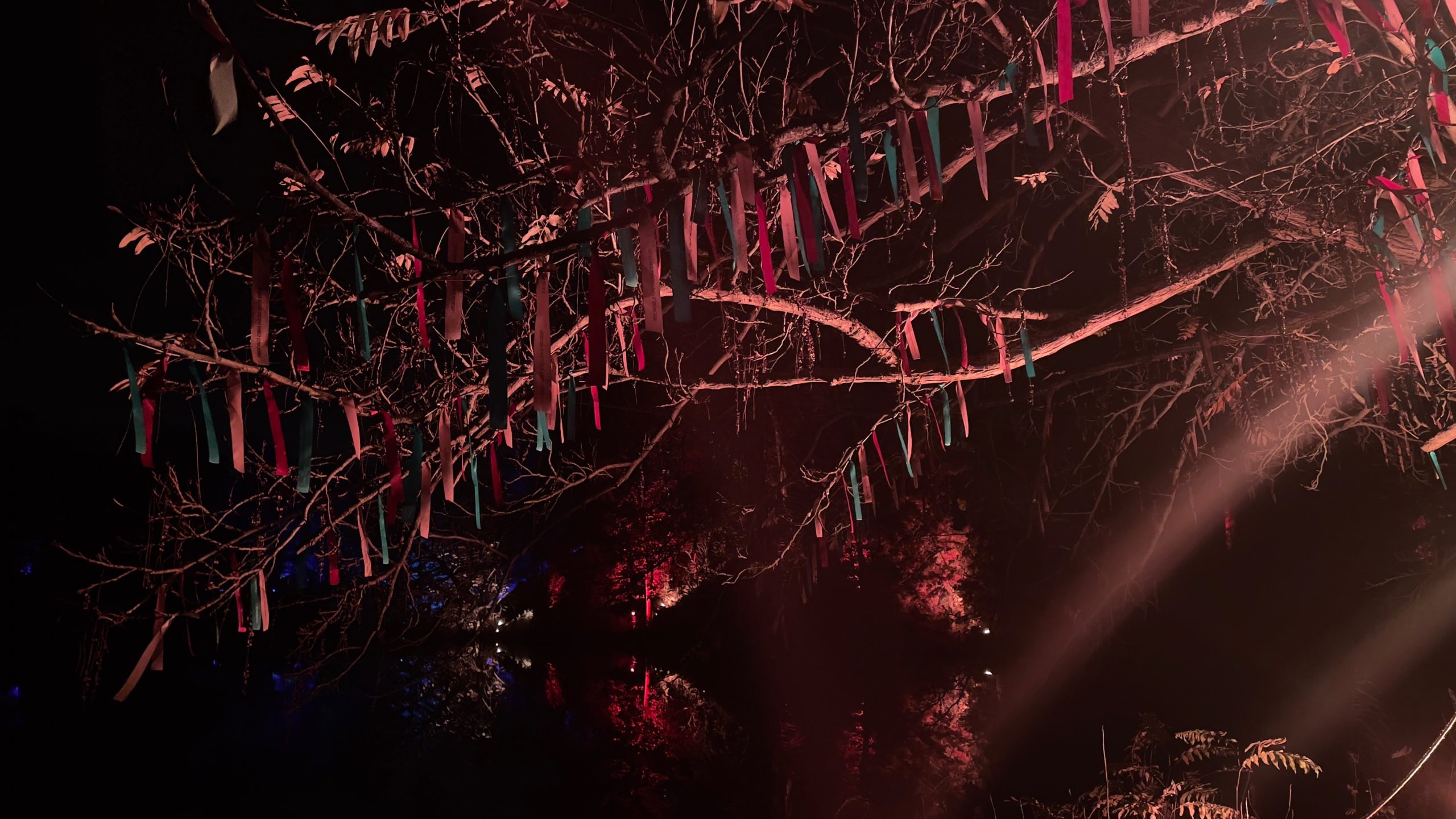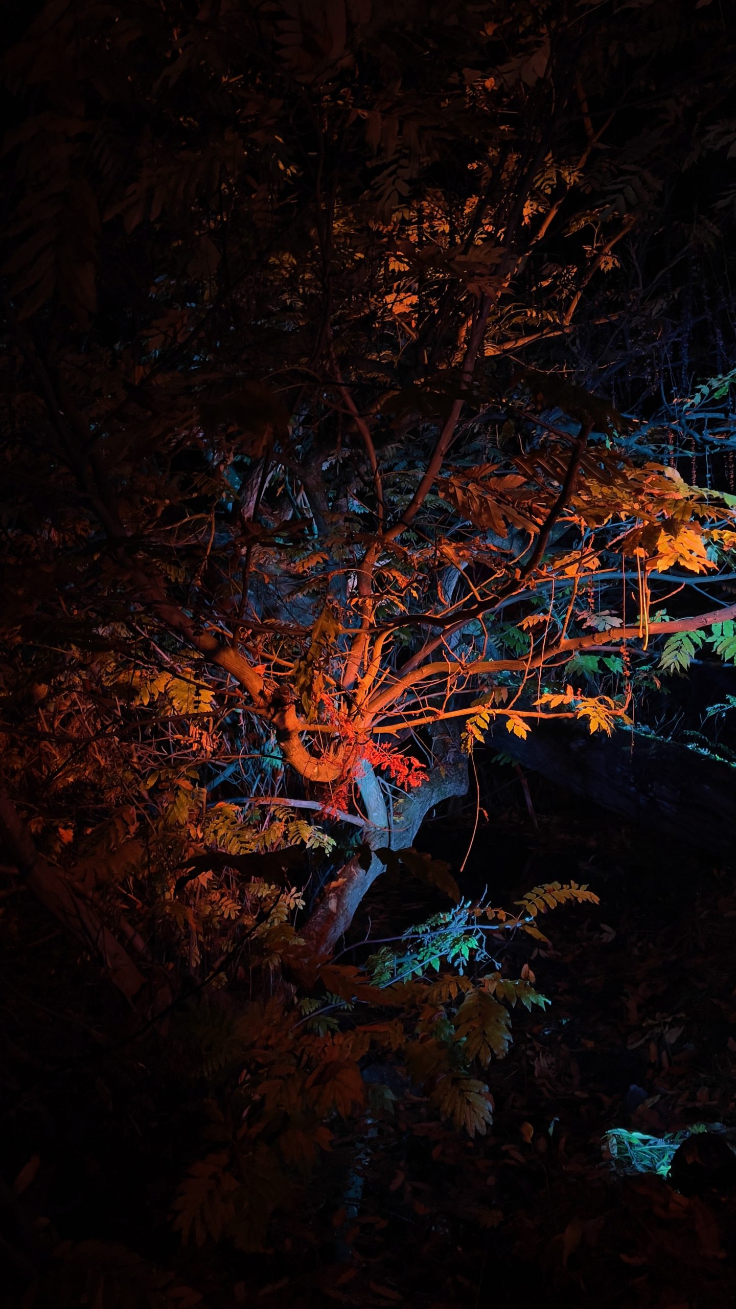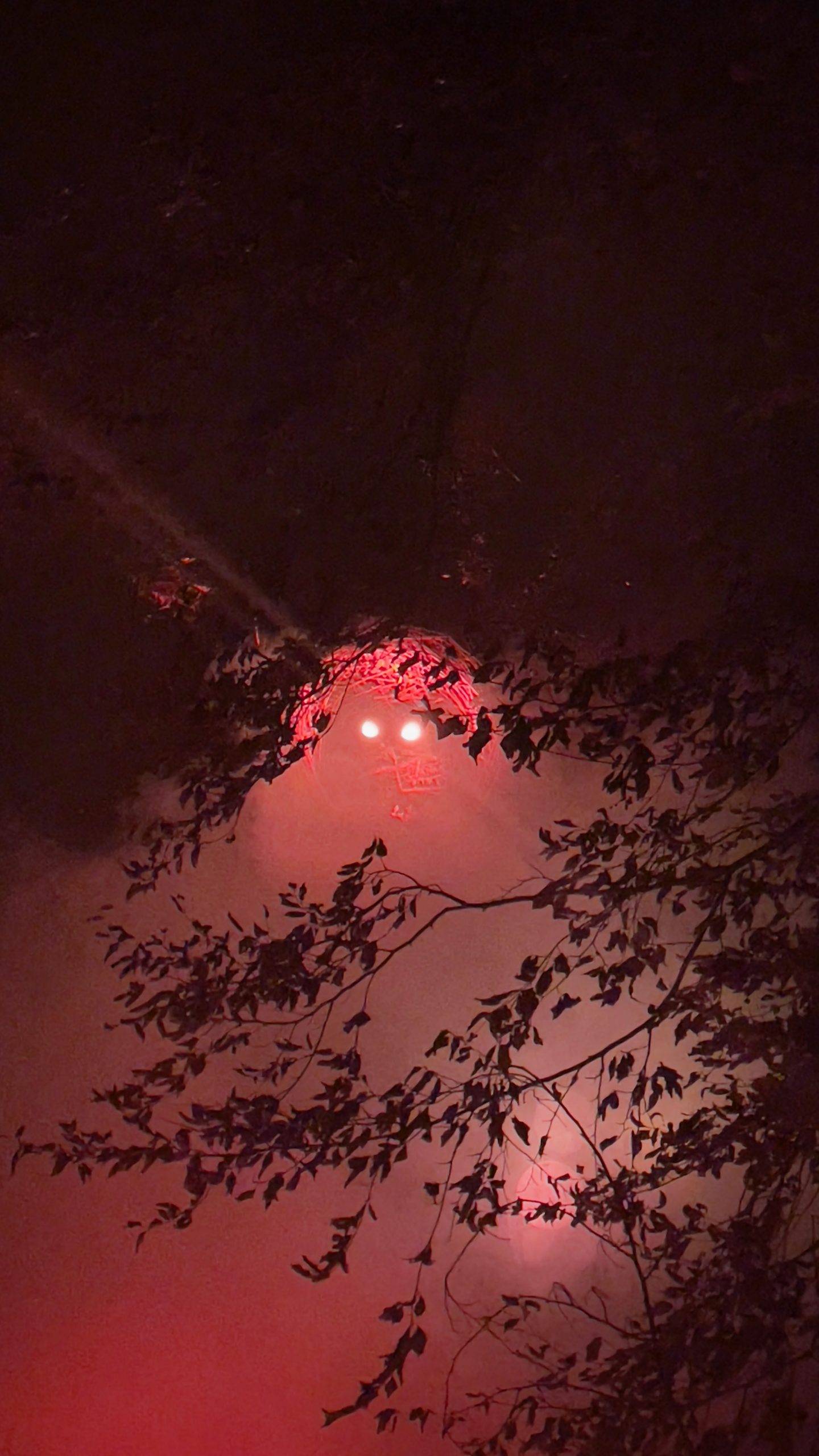 Mais j’étais bien la seule à ronchonner: autour de moi, tout le monde semblait ravi. Et je suppose que vu à travers les yeux d’un enfant, le parcours avait quelque chose de magique – quoiqu’impressionnant à certains endroits, notamment sur le pont au-dessus de la caverne du monstre aux yeux rouges planqué dans une épaisse nappe de brume. Un peu basiques à mon goût, les installations avaient néanmoins le mérite de fournir matière à de belles photos. Et la promenade nocturne assez longue (sans nous presser, nous avons mis environ une heure et demie à finir la boucle) était très agréable après une journée de travail passée enfermés en ville.