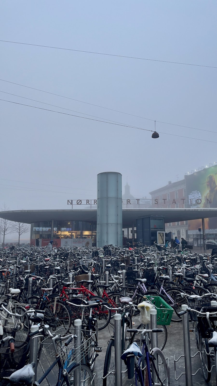 Notre repas fini, nous traînons sur nos iPad jusqu’à ce qu’une affluence grandissante et les éclats de voix qui vont avec nous chassent au-dehors. J’ai l’impression d’avoir franchi une faille de l’espace-temps et d’émerger dans une autre ville. Tout à l’heure, le ciel était bleu et sans nuages; là, un brouillard à couper au couteau recouvre la ville et dissimule tout à plus de cent mètres. Nous marchons jusqu’au métro Norreport, où se trouve un food court dans lequel nous nous souvenons avoir mangé lors d’un de nos séjours précédents. Le flagship store Osterlandsk Thehus est malheureusement fermé. Comme la météo me donne une irrésistible envie de chocolat chaud et que nous n’avons pas de quoi en faire à l’Air Bnb, nous nous engouffrons dans la boulangerie Emmerys voisine pour une petite pause sucrée avant de regagner nos pénates. Si j’adore l’atmosphère spectrale, j’aime nettement moins le froid glacial qui transperce nos vêtements…