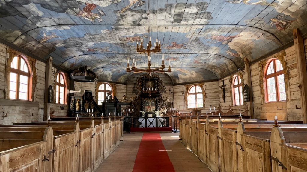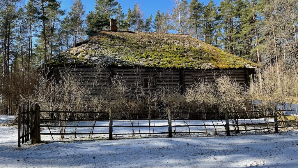 Inspiré de Skansen, que nous avions visité à Stockholm en… juin 2011 à vue de nez, le musée ethnographique de Lettonie occupe un grand parc forestier au bord d’un lac. On peut y admirer des reconstitutions d’habitations et autres bâtiments (moulins, églises…) typiques de diverses époques de l’histoire locale. Malheureusement, en cette saison, il n’y a aucune animation par des figurants en costume, et le restaurant demeure fermé même le week-end. Bon, ben vu la longueur de la visite, on va déjeuner très tard aujourd’hui. Mais l’entrée coûte à peine 2€ et le parc est quasiment désert, ce qui va nous permettre de prendre autant de photos qu’on veut sans être embêtés.