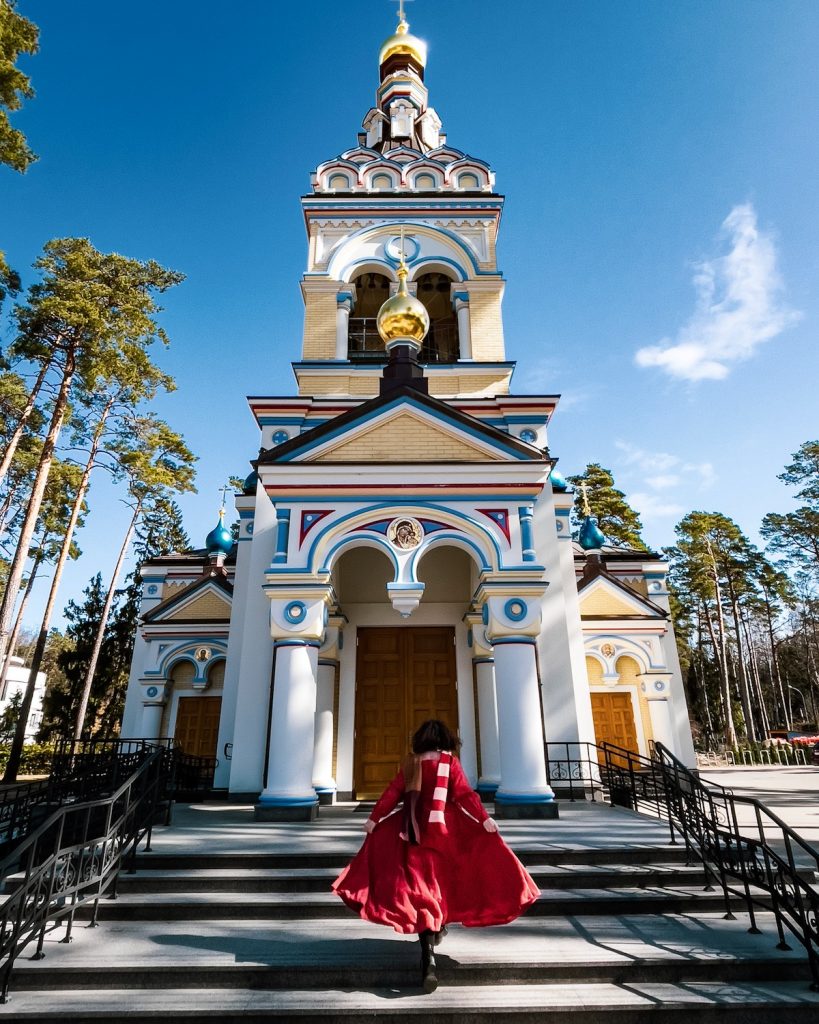 Première halte devant une superbe église orthodoxe. Je retire ma parka pour monter les marches une fois, deux fois, dix fois pendant que Chouchou me mitraille avec son appareil photo dans l’espoir de capter LE bon mouvement de jupe. Comme on doit s’interrompre chaque fois qu’un visiteur se dirige vers l’entrée du bâtiment, la manoeuvre prend tout de même un certain temps. Alors que je viens enfin de me rhabiller, de jeunes touristes allemandes demandent à Chouchou de leur tirer un portrait de groupe à l’Instax. Je pense qu’elles se féliciteront de leur choix en voyant le résultat.