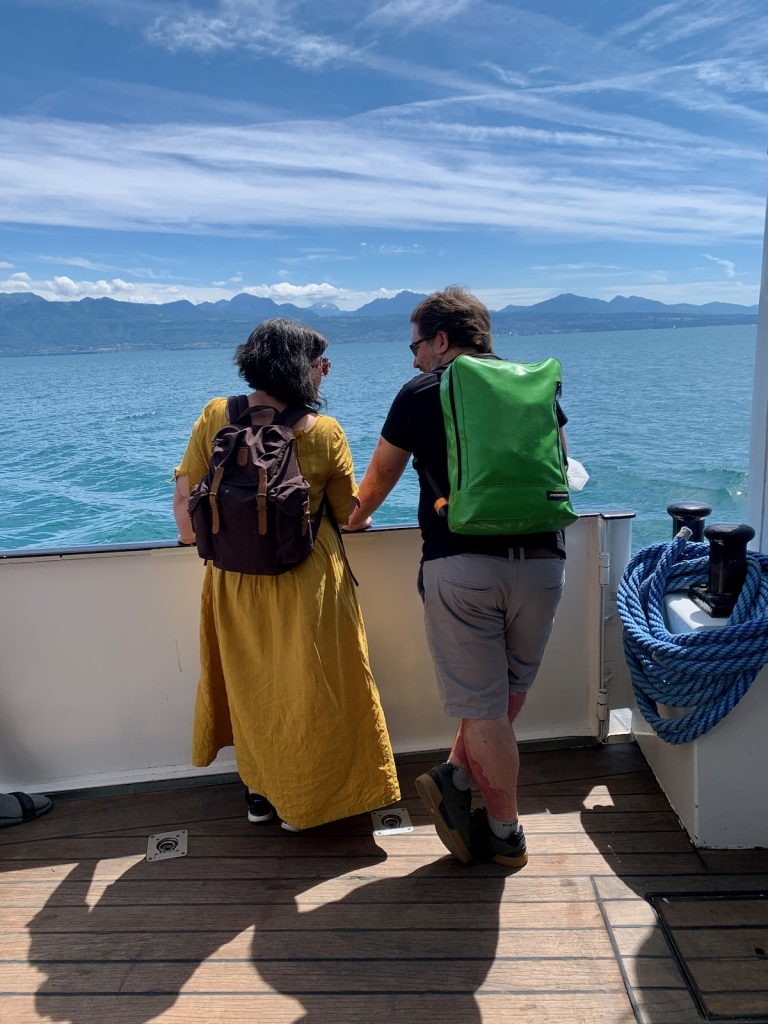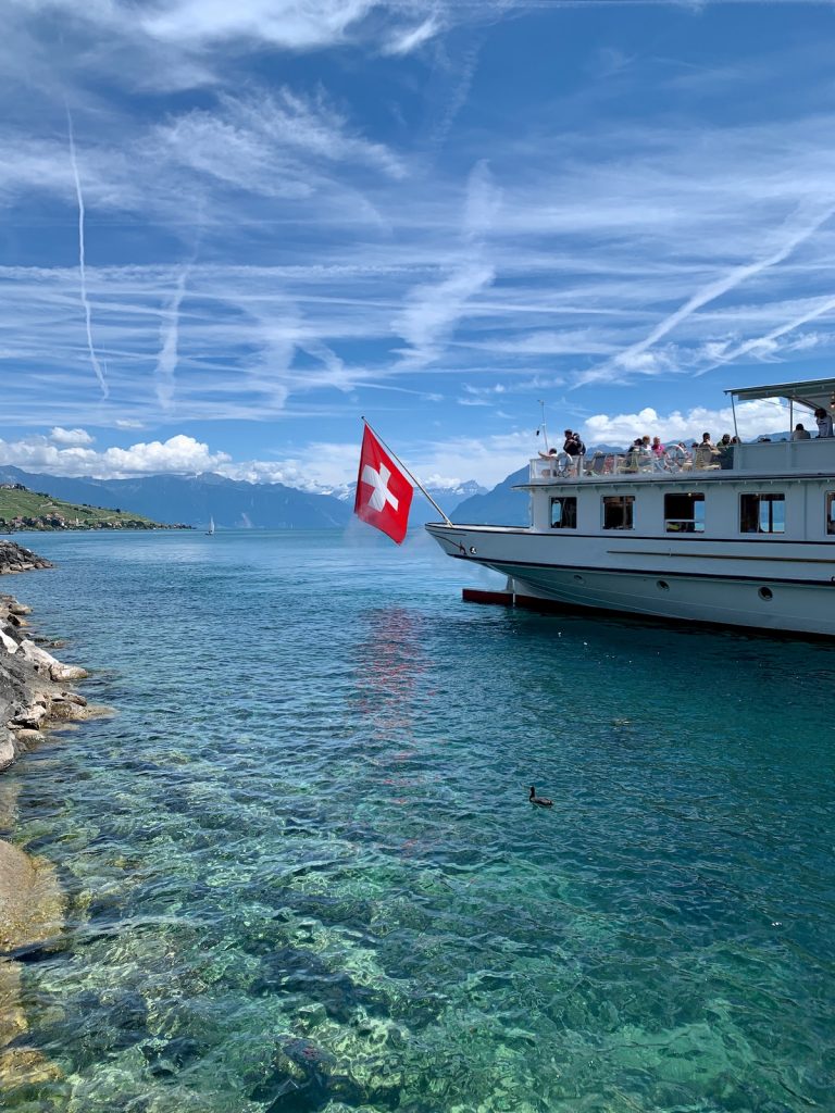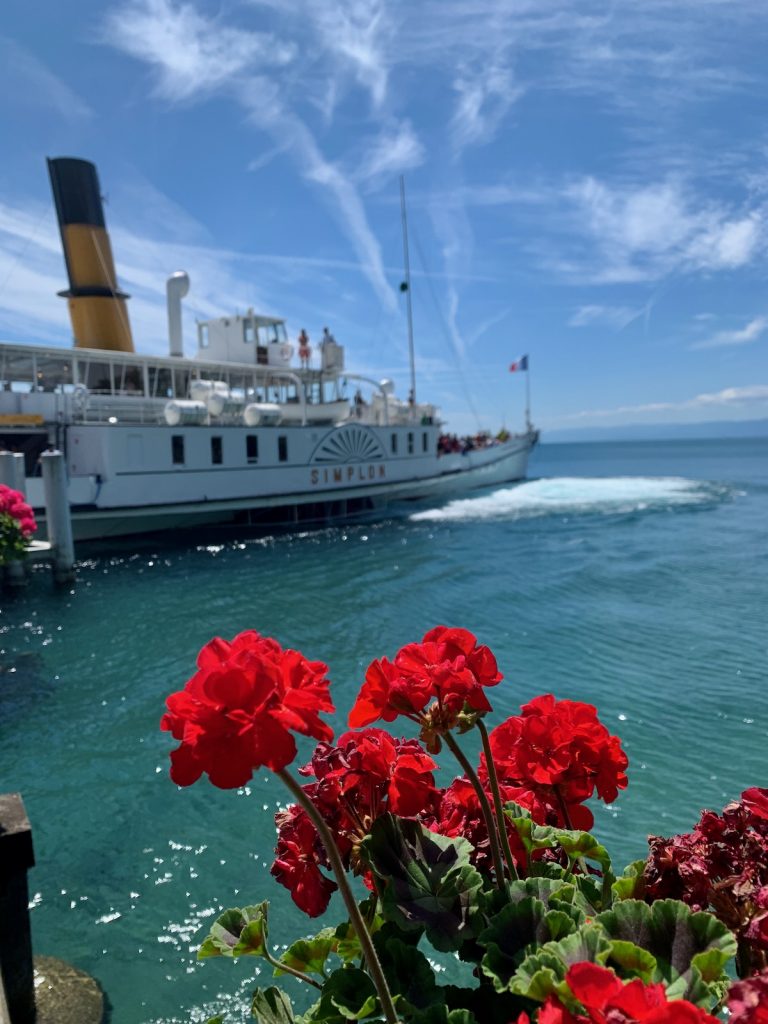 Après ça, on remballe nos affaires et on se promène dans les ravissantes petites rues de Lutry. Le plan initial était de prendre le bateau jusqu’à Lausanne pour faire plaisir à Chouchou. Certes, il n’est plus avec nous, mais Shalf aussi aime bien ce bateau, et avant de partir de chez Lady Pops, j’ai pensé à prendre un comprimé d’Itinérol pour ne pas être malade pendant le trajet. On se dirige donc vers l’embarcadère pour attendre l’arrivée du Simplon. Une fois à bord, on s’installe sur le pont avant et on regarde défiler la berge en cassant du sucre sur le dos des politiciens et des services publics français (Shalf et moi, on en a GROS). La traversée est courte et plaisante. Comme j’ai la tête ailleurs, je ne pense pas du tout à prendre de photos; heureusement que Funambuline aura la gentillesse de m’envoyer les siennes plus tard.