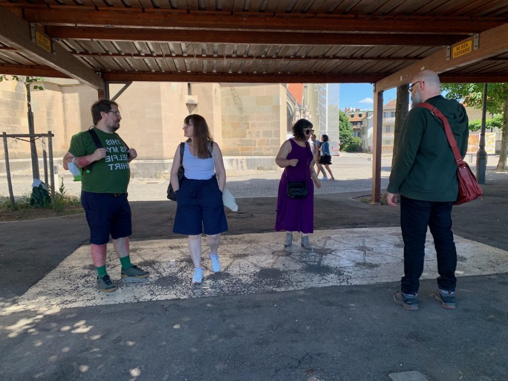 Nous poursuivons notre descente à pied jusqu’au centre-ville. Vu que je n’ai honteusement rien foutu pour la communauté, je propose d’offrir une tournée de glaces. Mais c’est un jour férié, et on a déjà bien du mal à trouver un bar ouvert. Ce sera Les Grandes Roches, avec sa belle terrasse partiellement nichée sous une des arches du pont Bessières. La serveuse manifeste une connaissance des IPA locales qui satisfait les buveurs de bière du groupe, tandis que les autres optent pour des limonades maison. Bien installés autour d’une grande table à l’ombre, on discute de politique et du prix des chaises (trop de contexte). Et surtout, on se marre énormément. Ca faisait longtemps que je n’avais pas pris autant de plaisir à des interactions de groupe, et surtout, que ça ne m’avait pas donné de l’énergie au lieu de m’en pomper.