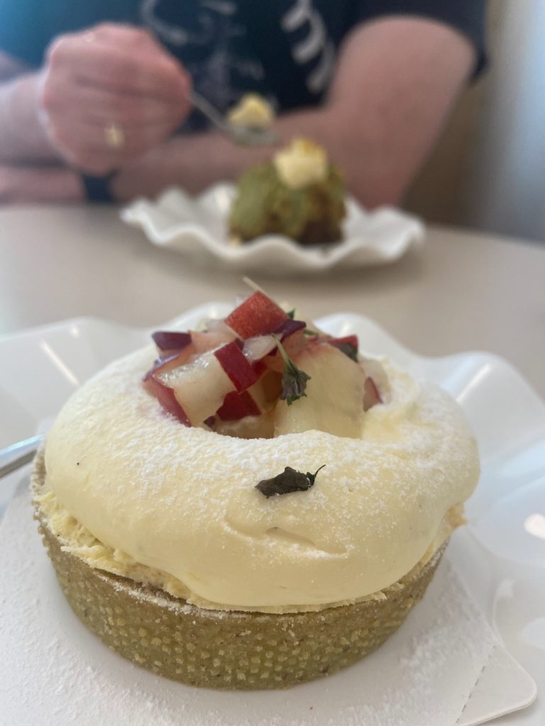 1. Le brunch de @unrêve: ce joli et grand salon de thé, ambiance « pâtisserie française chic et sobre à Tokyo », propose des gâteaux à la fois beaux et délicieux, ainsi que des plats salés aux saveurs originales. C’est simple: tout nous faisait envie. Chouchou a adoré son croissant-gaufre avec houmous au sésame noir, tagliatelles de courgette, oeuf Benedict et sauce shiitaké; je me suis régalée avec le scone salé au magret de canard fumé, chutney d’oignons-yuzu et purée d’artichaut. En dessert, il a pris le cheesecake matcha et moi un Belle saison: tartelette à la nectarine, à la vanille et au matcha. Parisiens ou touristes de passage dans la capitale, nous vous recommandons chaudement cette adresse.