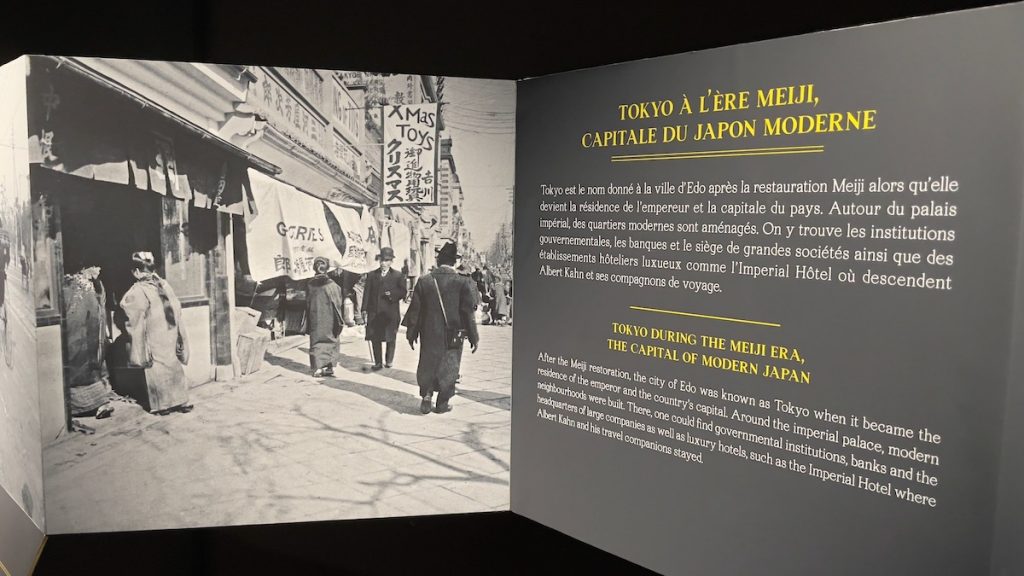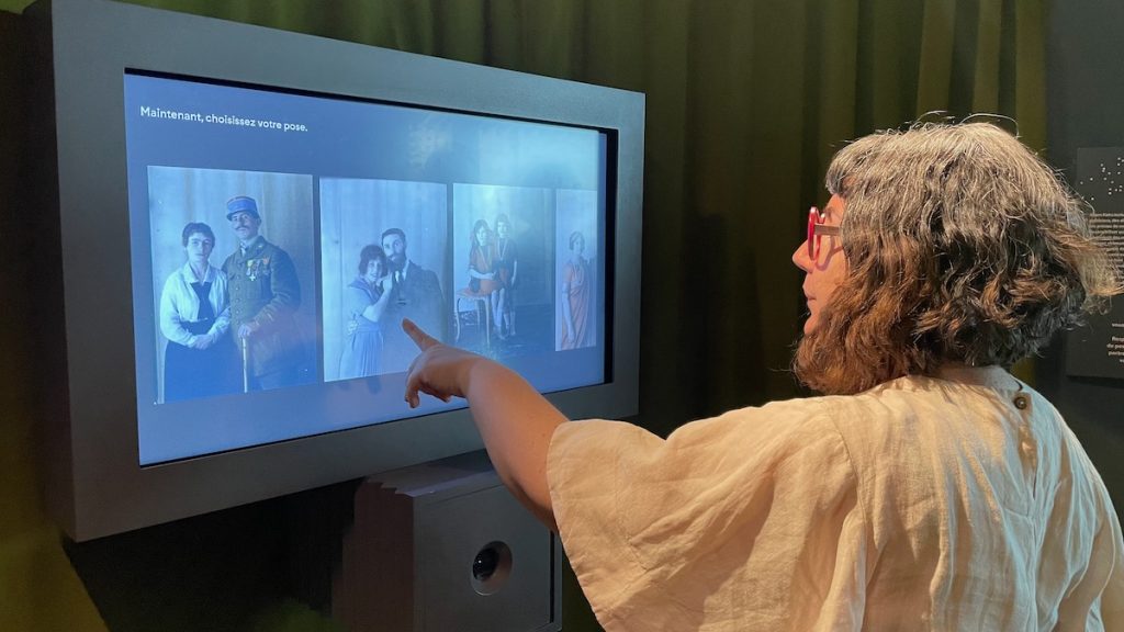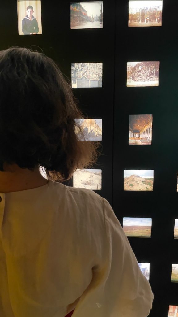 L’étage est consacré aux expositions temporaires. En ce moment, « Autour du monde » retrace le long périple qui amena Albert Kahn et ses compagnons de voyage en Asie au début du 20ème siècle. Mais avant de s’y plonger, les visiteurs peuvent s’amuser à créer un faux autochrome dans la cabine en accès libre qui fonctionne sur le principe d’un Photomaton. Les instructions sont données sur un écran tactile qui contraste de façon amusante avec cette technique ancienne, et à la fin, il suffit de donner une adresse mail pour recevoir le cliché.