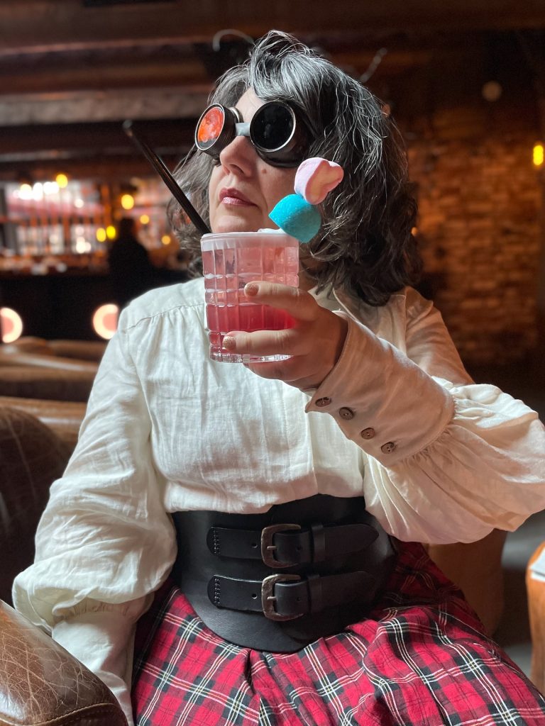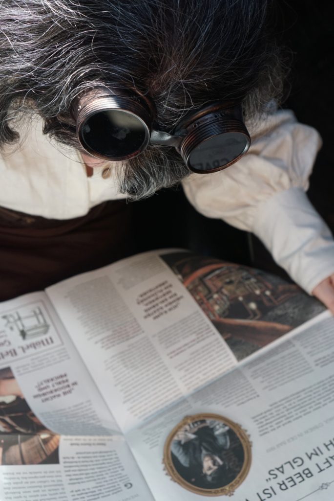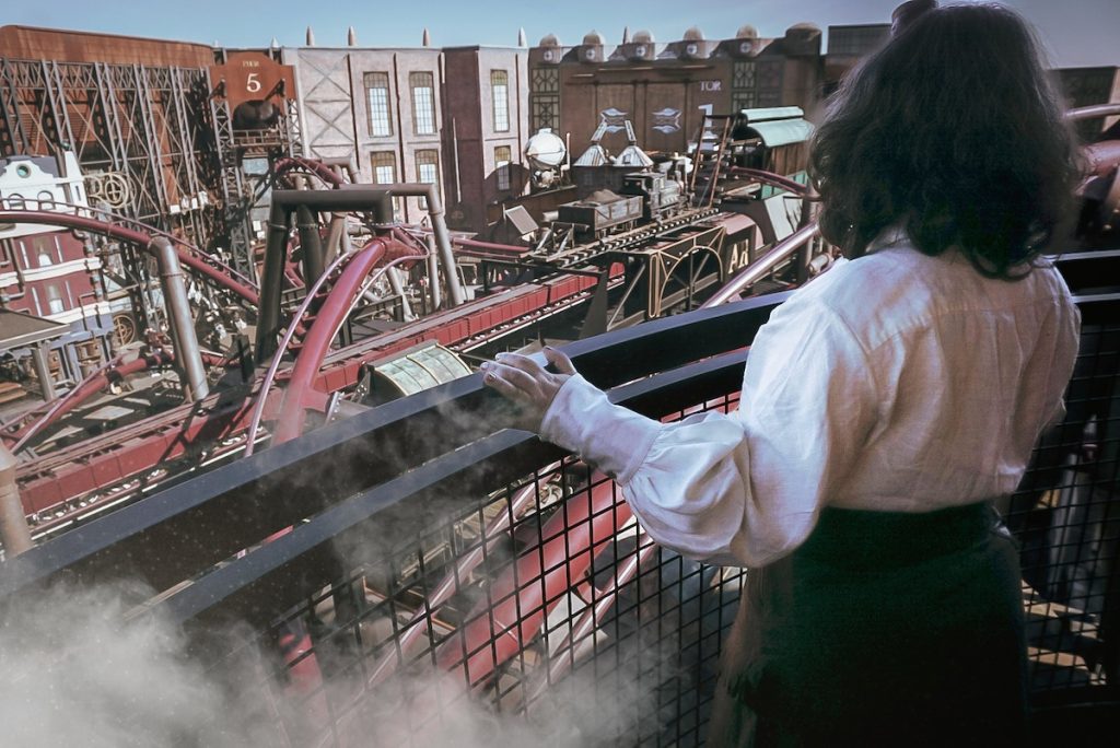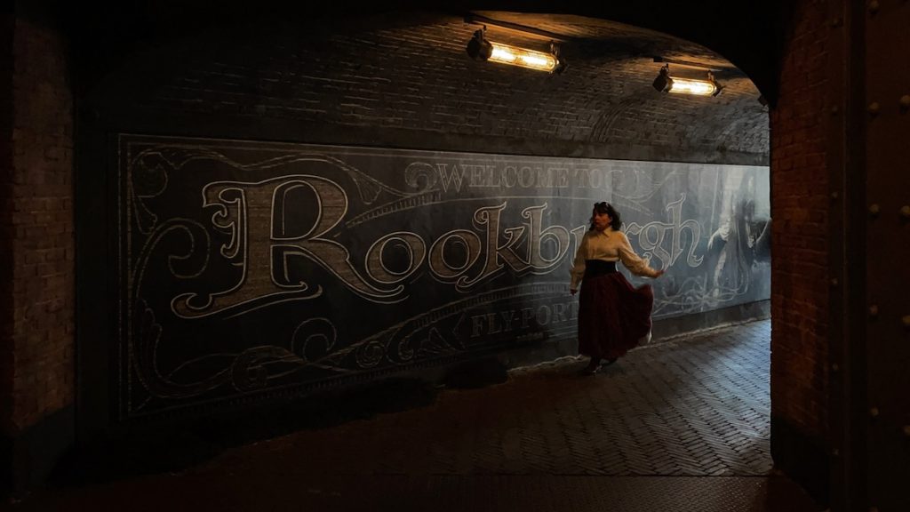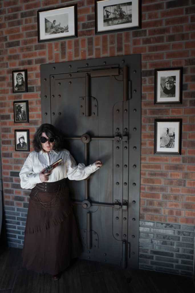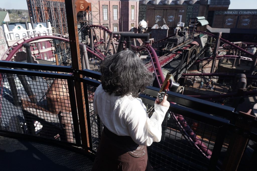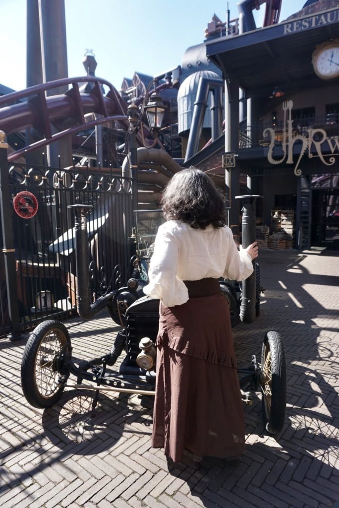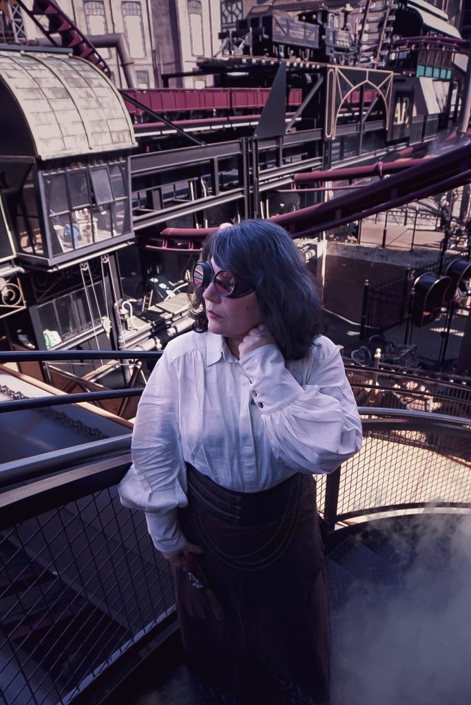 Nous consacrons le reste de la matinée à prendre des photos, d’abord dans l’hôtel puis dans le reste de Rookburgh, avec la tenue steampunk que j’ai emportée. Je décide de ne pas sourire et de me la jouer méchante avec mon faux pistolet, ce qui est très reposant! Par contre, le vacarme ambiant me prend très vite la tête, et je sens que du point de vue auditif, la journée va être longue. Quand Chouchou se déclare satisfait de la prise de vue, nous repassons à la cabine pour que je me change et enfile des vêtements plus confortables.