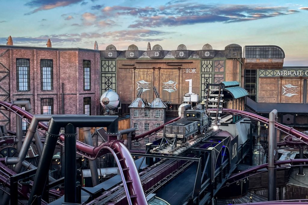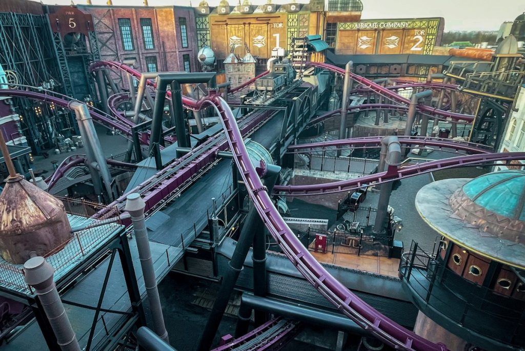 Nos sièges basculent vers l’avant pour nous mettre quasiment à l’horizontale et… c’est parti pour le grand huit le plus fun de toute ma vie. Une perfection absolue. Malgré les variations de vitesse, le mouvement est d’une fluidité merveilleuse; à aucun moment, les cervicales ou les lombaires n’encaissent d’à-coup. Les descentes brusques ne sont pas trop longues, les loopings passent tout seuls, et on hurle juste de plaisir en filant à travers Rookburgh au ras de l’eau ou des toits. Je ressors de là ébouriffée et ravie.