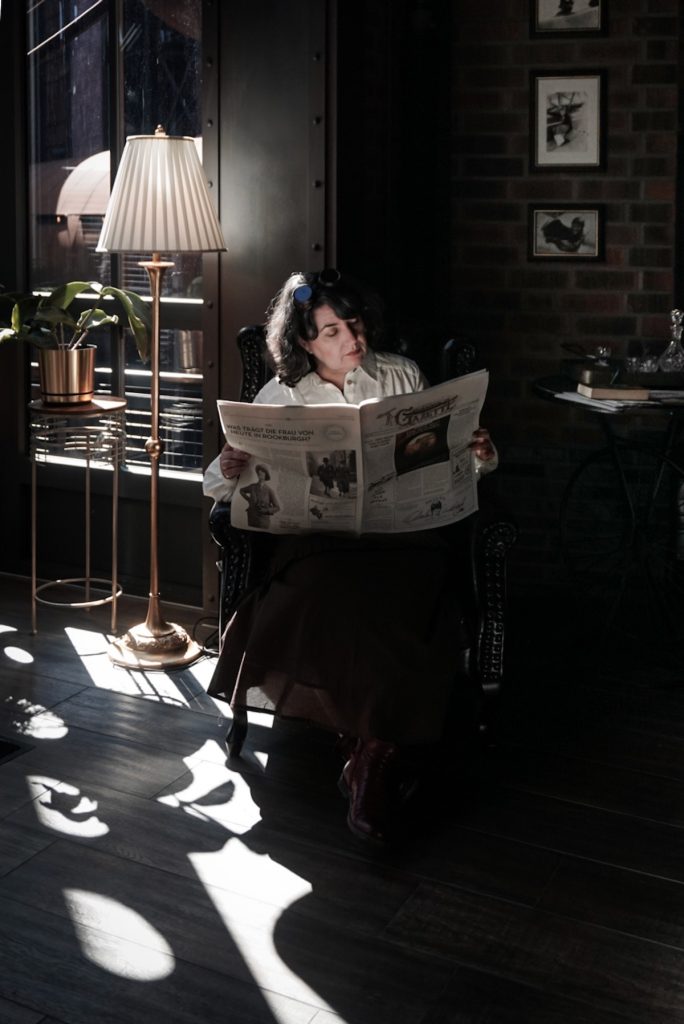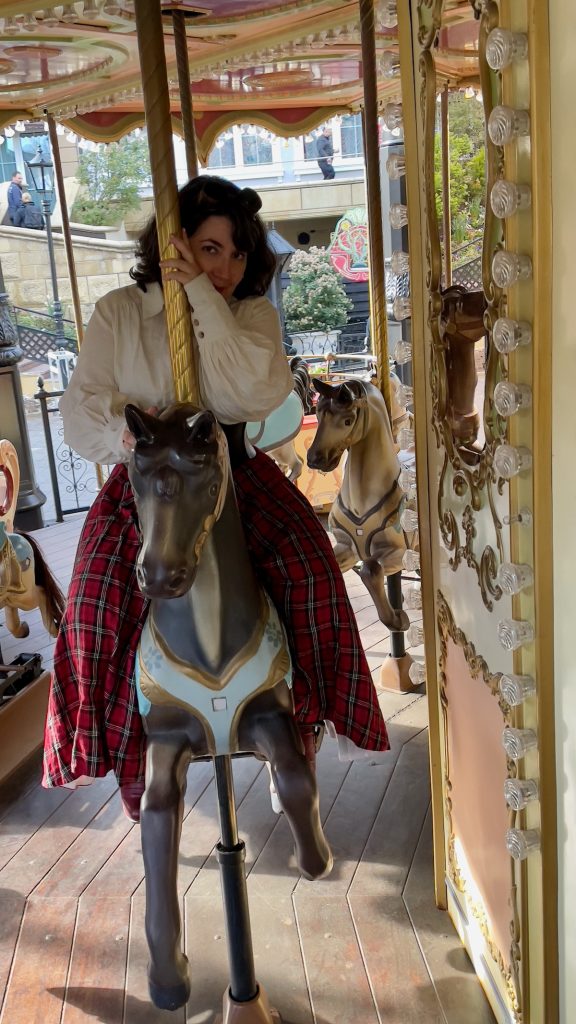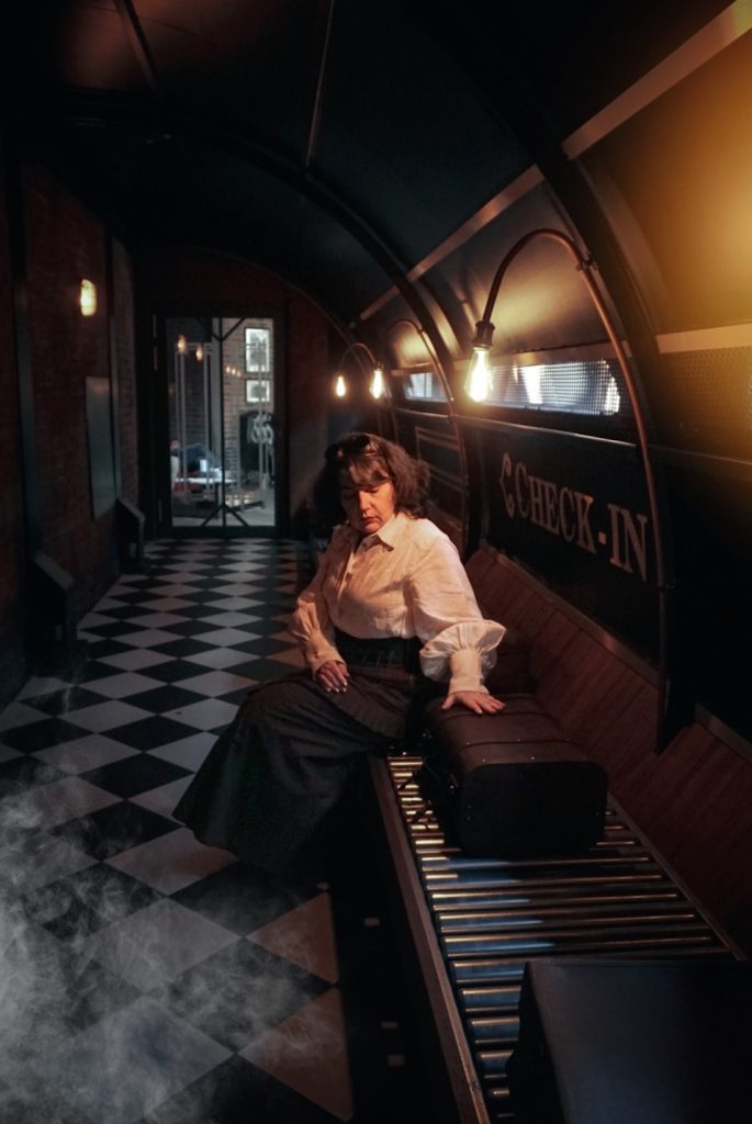 Retour à la cabine pour que je me change. Nous allons faire des photos dans le tunnel entre Rookburgh et Berlin, puis sur le manège de chevaux de bois (qui en réalité m’ont tout l’air d’être en plastique, mais soit). Nous passons l’heure qui nous sépare du dîner au bar 1919, où nous buvons des mocktails en prenant encore une série de portraits.