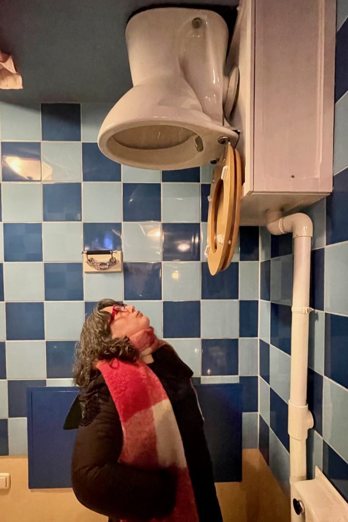 Je me sens un peu au bout de ma vie quand j’avise l’hôtel Tartuff, une fun house de 27 pièces. A priori, plutôt une attraction familiale, mais pépère et peu bruyante. J’entraîne donc Chouchou dans la file d’attente. Dès le début, en voulant faire une glissade sur une suite de rouleaux, je commets l’erreur de m’accrocher instinctivement aux barres sur les côtés. Résultat, mes pieds partent en avant tandis que mes mains refusent de lâcher prise; je tombe sur les fesses et me démonte une épaule. Pas bravo. Pour le reste, l’attraction est bel et bien calme mais amusante, et elle se termine par un toboggan étonnamment abrupt.