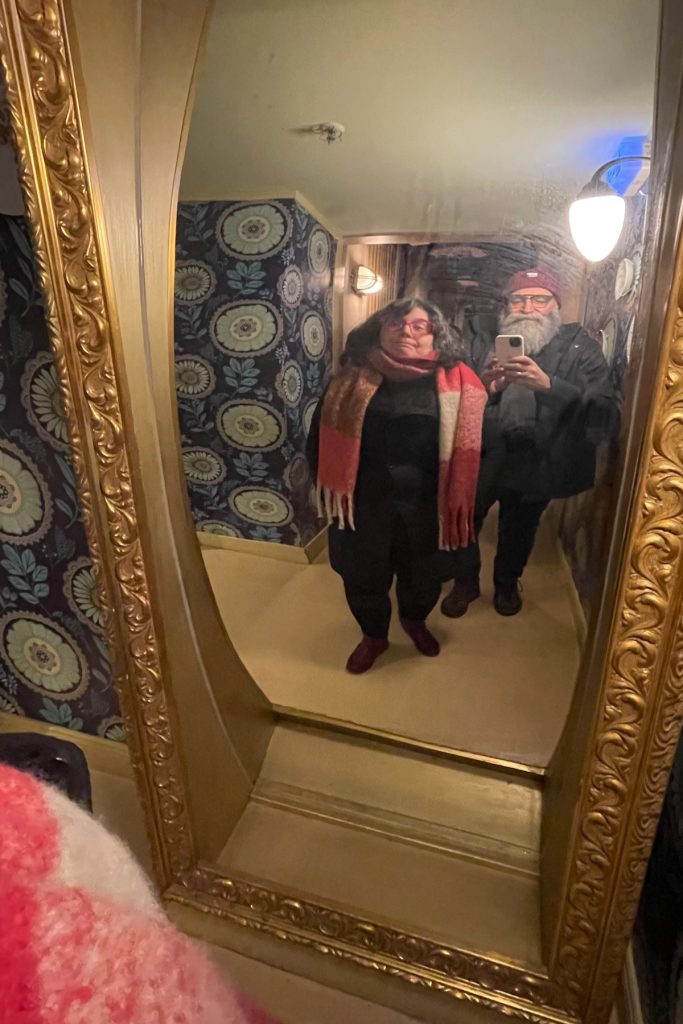 A 18h15, nous allons manger au restaurant voisin. Cette fois, on nous place à l’étage, un peu plus calme que la salle du bas. J’opte pour le menu végan et, comme hier, laisse la moitié de mon plat – des pâtes aux aubergines – bien qu’il soit franchement délicieux. Quand nous réglons nos boissons (non-comprises dans le forfait hébergement), le serveur nous complimente sur notre look. Ca fait toujours plaisir. La nuit n’est pas encore tombée lorsque nous regagnons notre cabine, mais un silence béni est enfin revenu sur le parc.