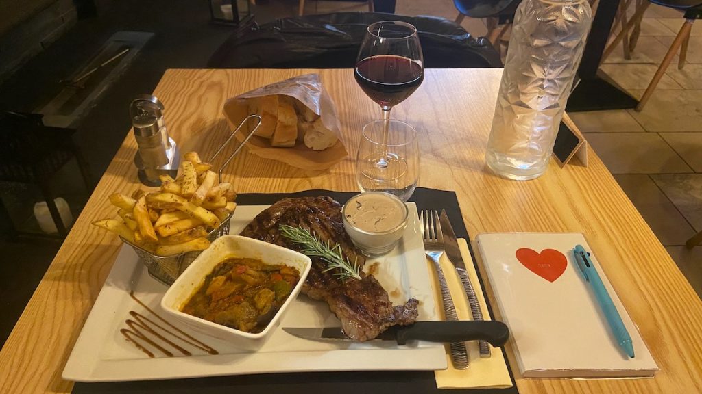 ★ Parce que j’ai eu une semaine éprouvante, je décide de m’emmener au resto pour le dîner. Quand j’arrive, les rideaux de la grande salle sont tirés et les lumières allumées alors qu’il fait encore grand jour, et à peine ai-je commandé que la sono envoie « Despacito ». Bouhouhouhouhou.