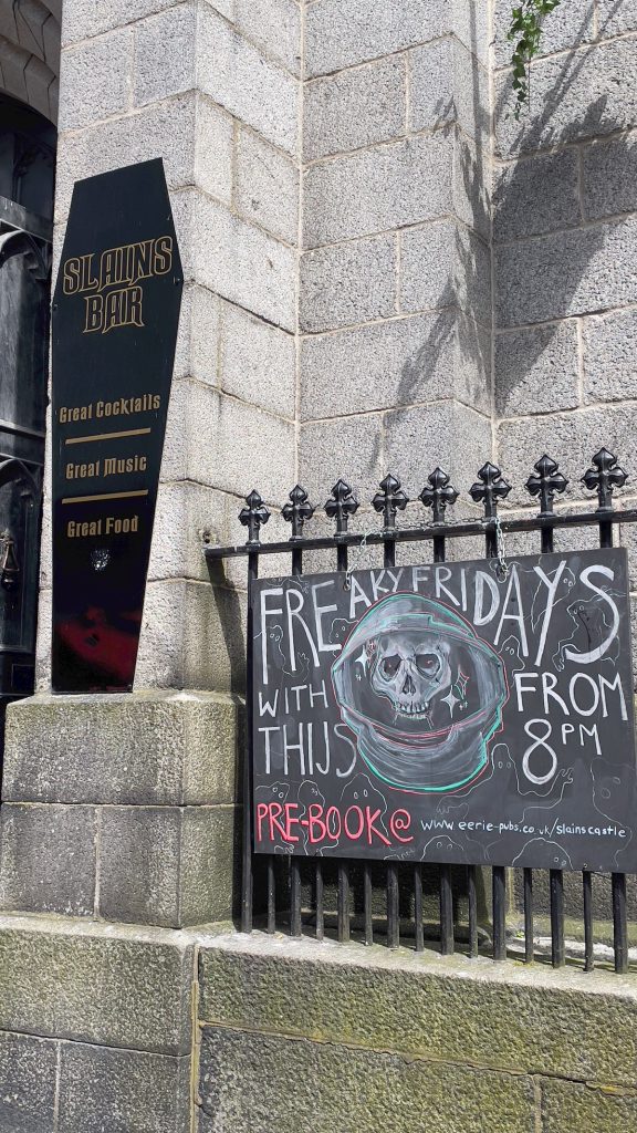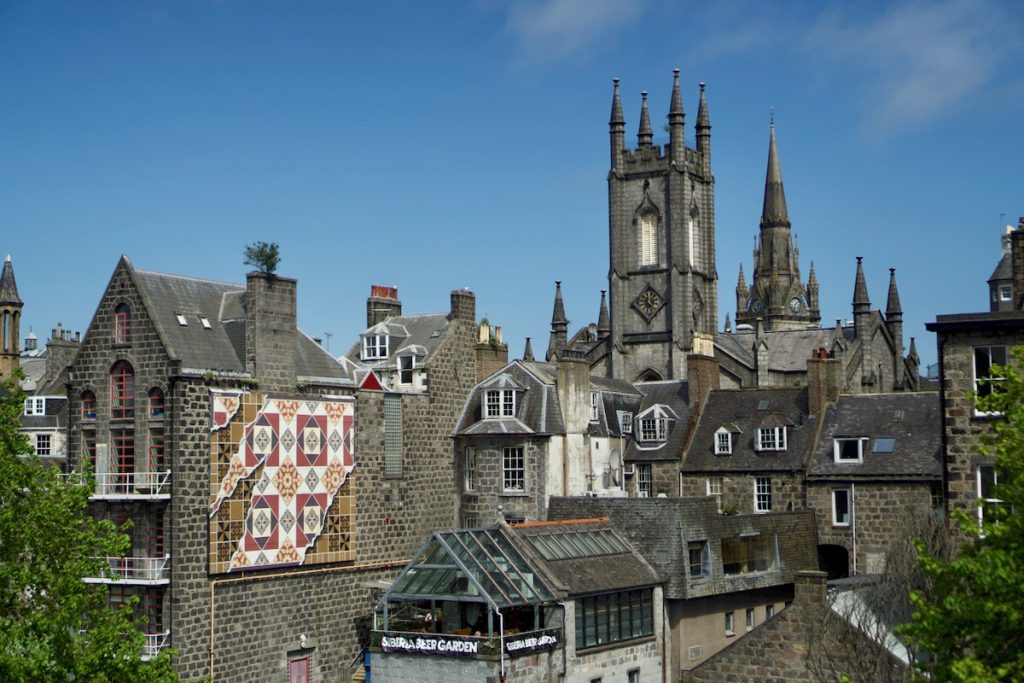La suite du programme, a priori, c’est un afternoon tea dans un bon salon de thé qui se trouve encore à une dizaine de minutes de marche. Mais comme à peu près tous les établissements de ce type en Ecosse, il ferme à 16h, soit dans moins d’une heure. A regret, je conviens que ça ne vaut pas la peine de pousser jusque là. Nous rebroussons donc chemin jusqu’à un bar intrigant aperçu non loin de l’Aberdeen Arts Centre: le Slains Bar, installé dans une ancienne église – comme le restaurant de Portsoy et des tas d’autres établissements de bouche ou de boisson un peu partout en Ecosse. Un principe de recyclage qui ne peut que ravir une athée dans mon genre.