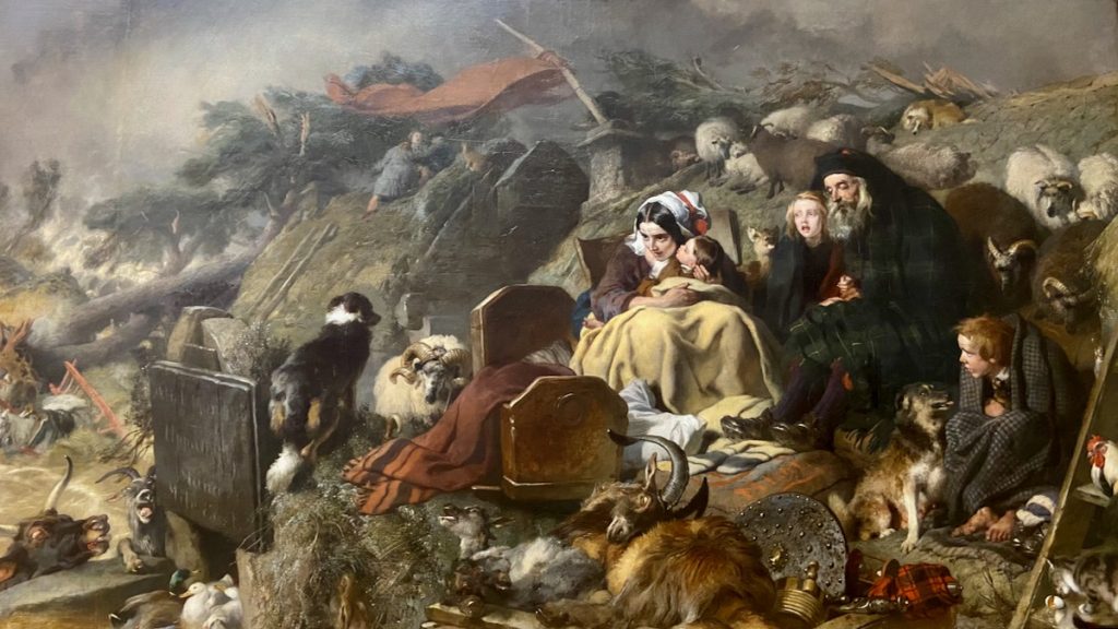 Quant à Chouchou, bien que beaucoup de choses lui plaisent, il apprécie particulièrement le tableau « Flood in the Highlands » d’Edwin Landseer.