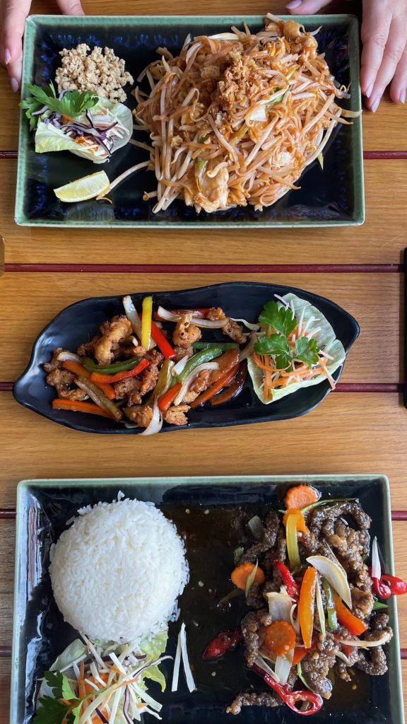 Comme hier, nous décidons de passer la matinée dans notre confortable appartement pour nous reposer et avancer dans le traitement de tout le contenu produit depuis le début du voyage. A l’approche de midi, nous nous aventurons dehors pour tester un autre restaurant recommandé par Gillian: le Padthai Hotpot and Grill. Chouchou se régale avec une entrée à base de poulet dont je n’ai pas noté le nom, suivie d’un Jew Yim beef. Je suis moins emballée par mon Pad Thai dont les nouilles sont trop cuites et les saveurs peu développées. Mais la dame qui nous sert est charmante et la salle très agréable, donc pas de regrets.