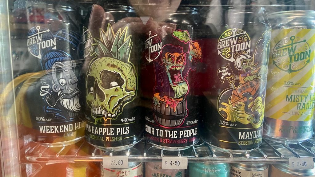 Un peu plus haut dans cette rue boboïsante où se succèdent un minuscule salon de beauté entièrement rose, un fromager gourmet, un magasin de bonbons à l’ancienne et un autre de laines artisanales, je pousse la porte d’une épicerie de luxe qui vend le magazine Hidden Scotland. J’ai malheureusement dû cesser de commander ce dernier après que le Brexit en a plus que doublé le prix entre les frais de port et les frais de douane; aussi, je suis ravie de pouvoir acheter le numéro le plus récent (j’aurais bien pris tous ceux qui me manquent, mais chacun d’eux est à peine moins volumineux qu’un catalogue de La Redoute…). Au passage, j’admire les splendides étiquettes de bières locales en regrettant presque que ni Chouchou ni moi n’en buvions.