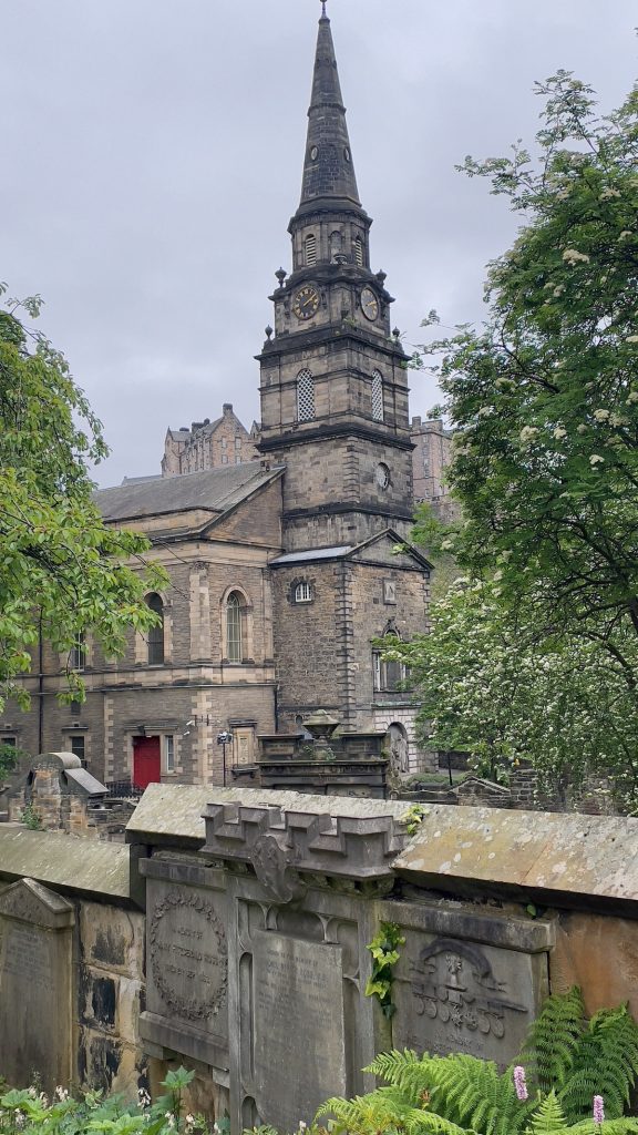 Nous longeons l’église épiscopale St John et son ravissant cimetière, puis remontons Lothian Road surplombée d’un côté par le majestueux château et bordée de l’autre par… un vilain parking à étages. Je passe chez Paper Tiger, autre revendeur Roger Laborde qui, pas plus que celui d’Aberdeen, ne vend le carnet que je cherche désespérément. Bon, et bien je crois que je peux en faire mon deuil. Ca n’aura pas été faute d’essayer.