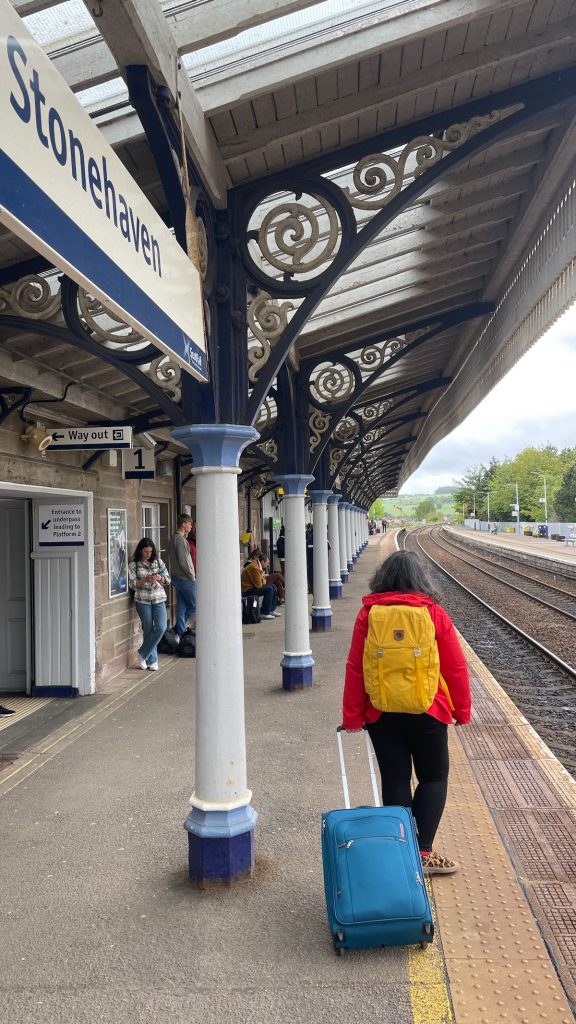 A regret, nous faisons nos adieux à ce si bel endroit qui n’existera sans doute plus en tant que B&B si jamais nous repassons dans le coin. Puis nous traînons de nouveau nos bagages jusqu’à la gare de Stonehaven – et dans ce sens-là, ça monte, pfffff.