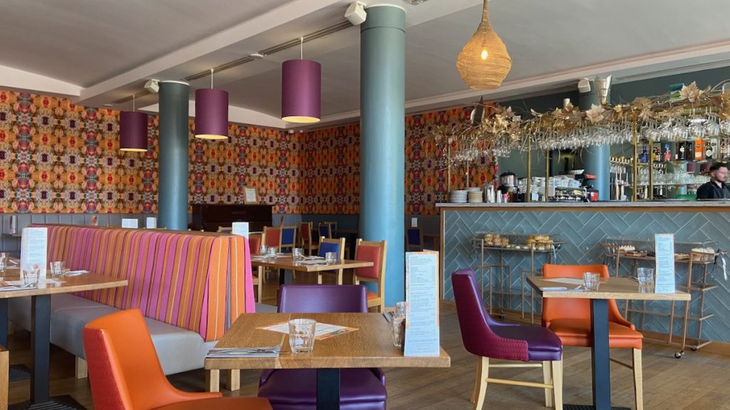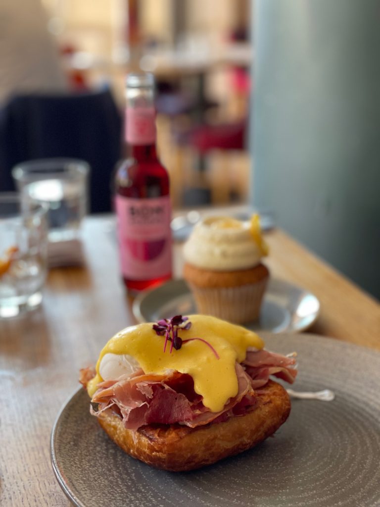 Il nous reste encore un peu de temps à tuer; alors, nous allons nous poser au restaurant du musée: un très bel endroit coloré et lumineux, avec un menu hyper appétissant et une magnifique terrasse. Chouchou commande un cupcake citron-gingembre et moi des oeufs Benedict servis sur un pain à la texture de croissant. MIAM. Ce n’était pas la dernière matinée à Edimbourg que je comptais passer, mais une surprise très plaisante, ça me va aussi!